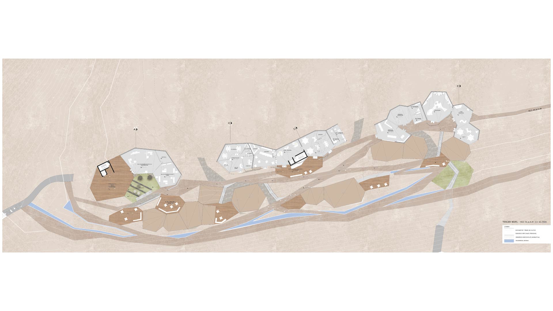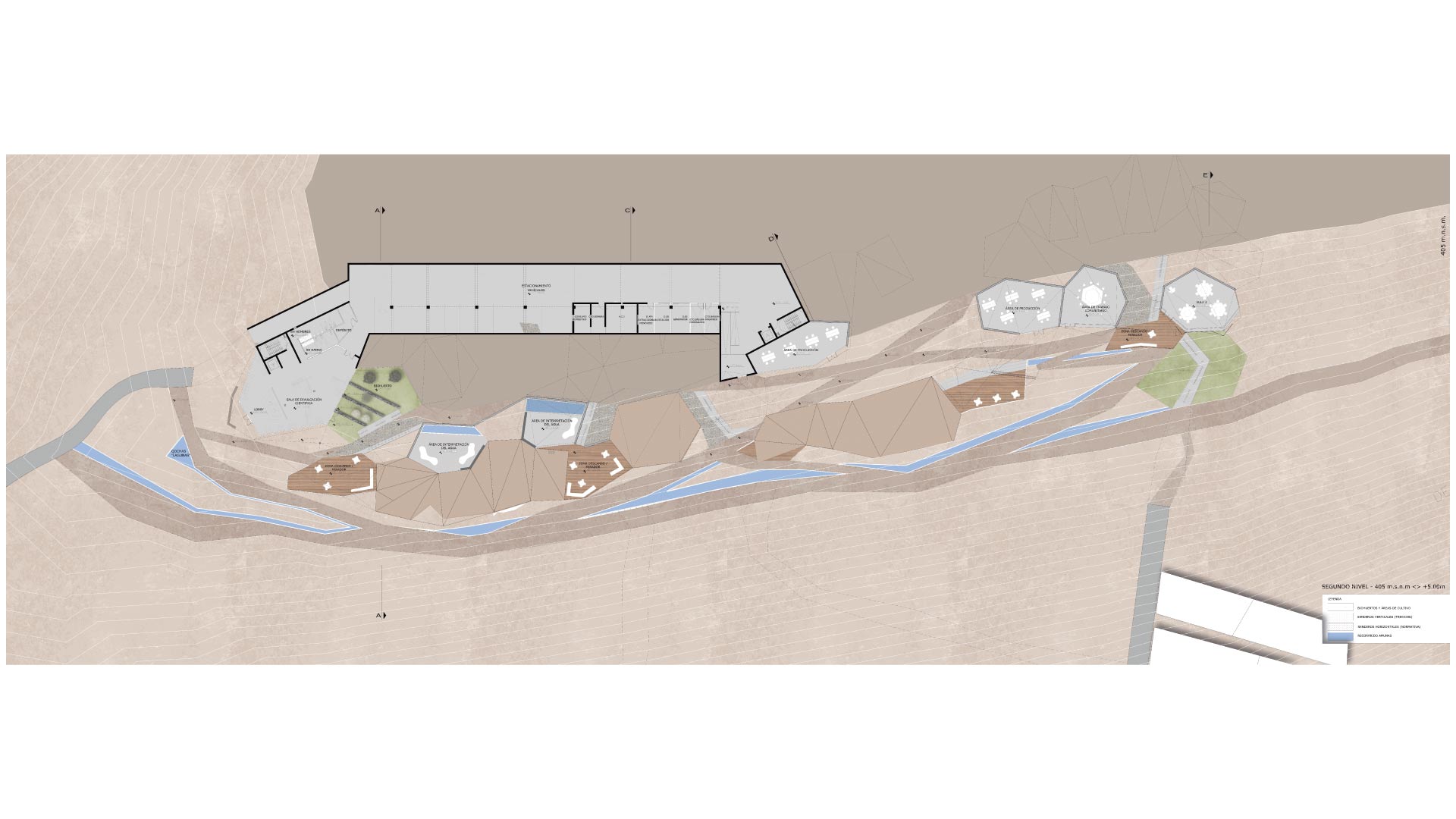 Este proyecto propuso 3 tipos de programa que tienen relación con el tipo de usuario del proyecto. Zona de investigación, zona de capacitación y zona de educación son los 3 sectores del proyecto , los cuales presentan núcleos compartidos y están rodeados por loma.
