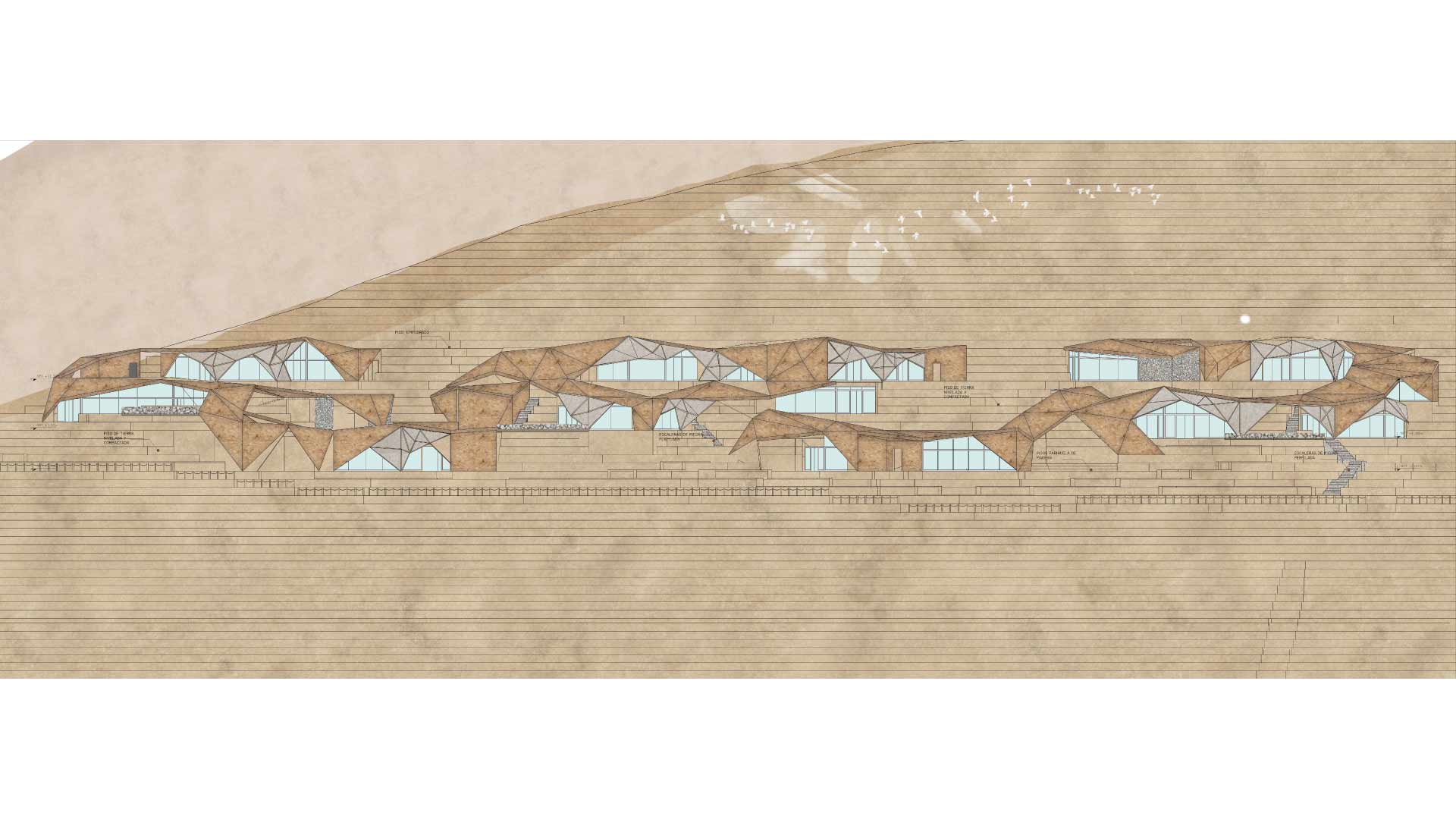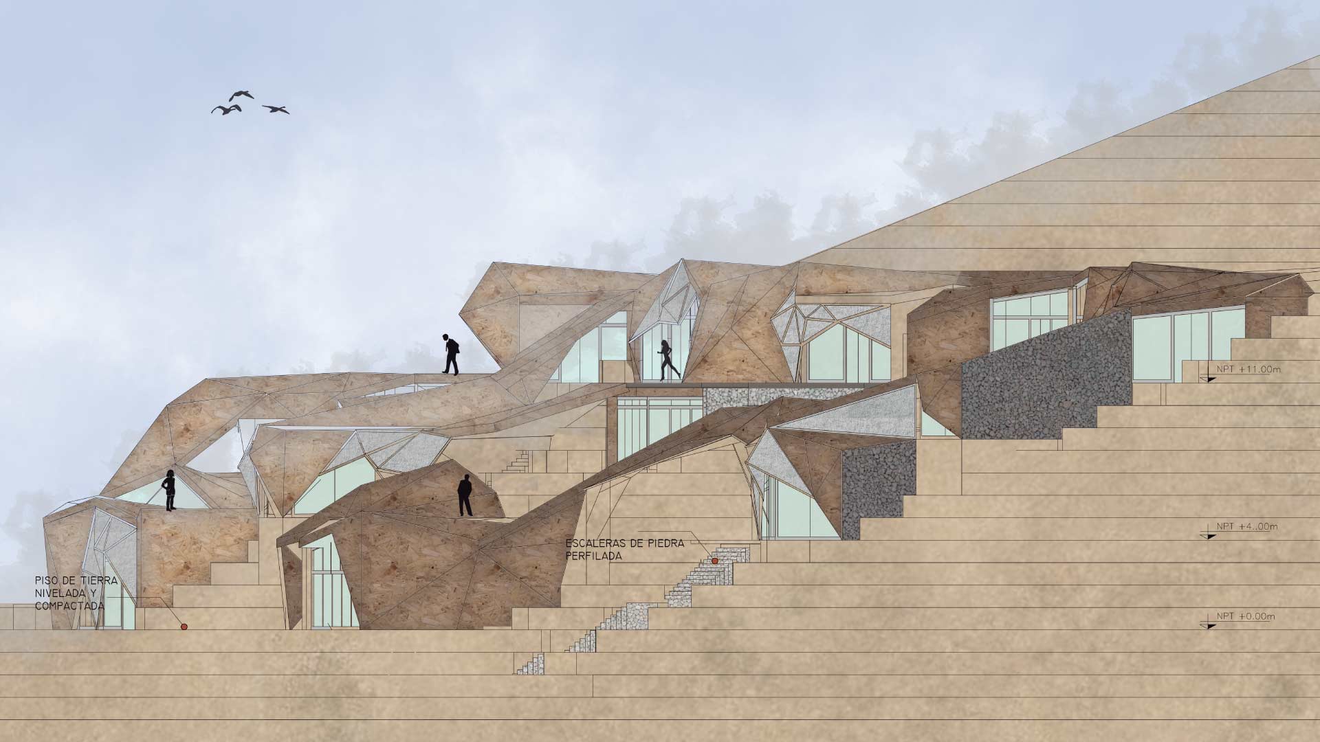 Ubicado en la falda de la Loma de Amancaes, el proyecto invita a las comunidades a redescubrir el vínculo entre ciudad y naturaleza. Inspirado en la geometría de la flor de Amancaes y mediante principios de biomímesis y fractalidad, el diseño adopta formas orgánicas que reflejan la adaptación y transformación del entorno natural, al utilizar una arquitectura de pliegues, como cobertor y muros.