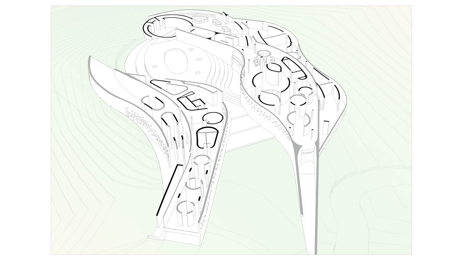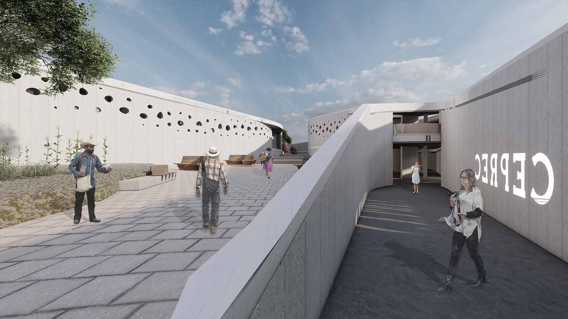 La mímesis guía todo el proceso arquitectónico; por lo tanto, se armoniza con el contexto para que este sea el protagonista de un legado cultural tangible; sin embargo, también se genera un punto de interacción entre lo urbano y la historia. Estrategias como la integración de andenes y la manipulación de la forma serán claves para controlar la luz, lo que garantizará un ambiente ideal para el aprendizaje y el cultivo de plantas.