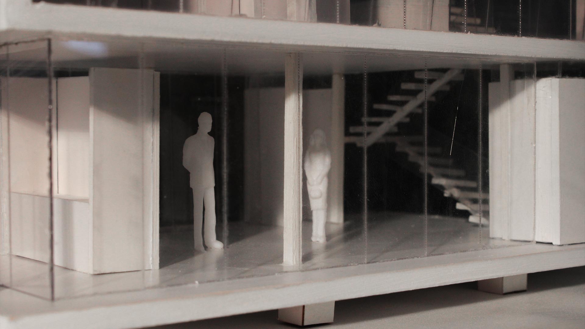 En el resto de la planta se ubica la sala comedor, la cocina y el closet-lavandería. Predominan la planta libre y la permeabilidad. La casa cuenta con escaleras de pasos volados y una viga en el medio. En el segundo nivel están ubicados los espacios más privados del usuario: El dormitorio principal y el dormitorio secundario.