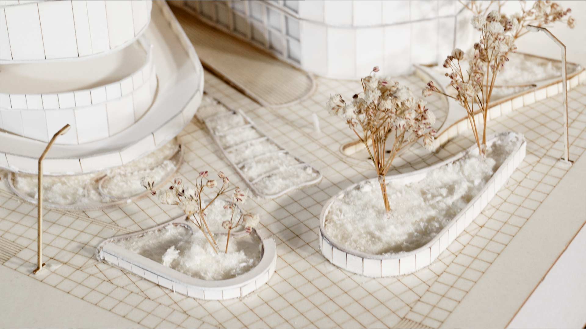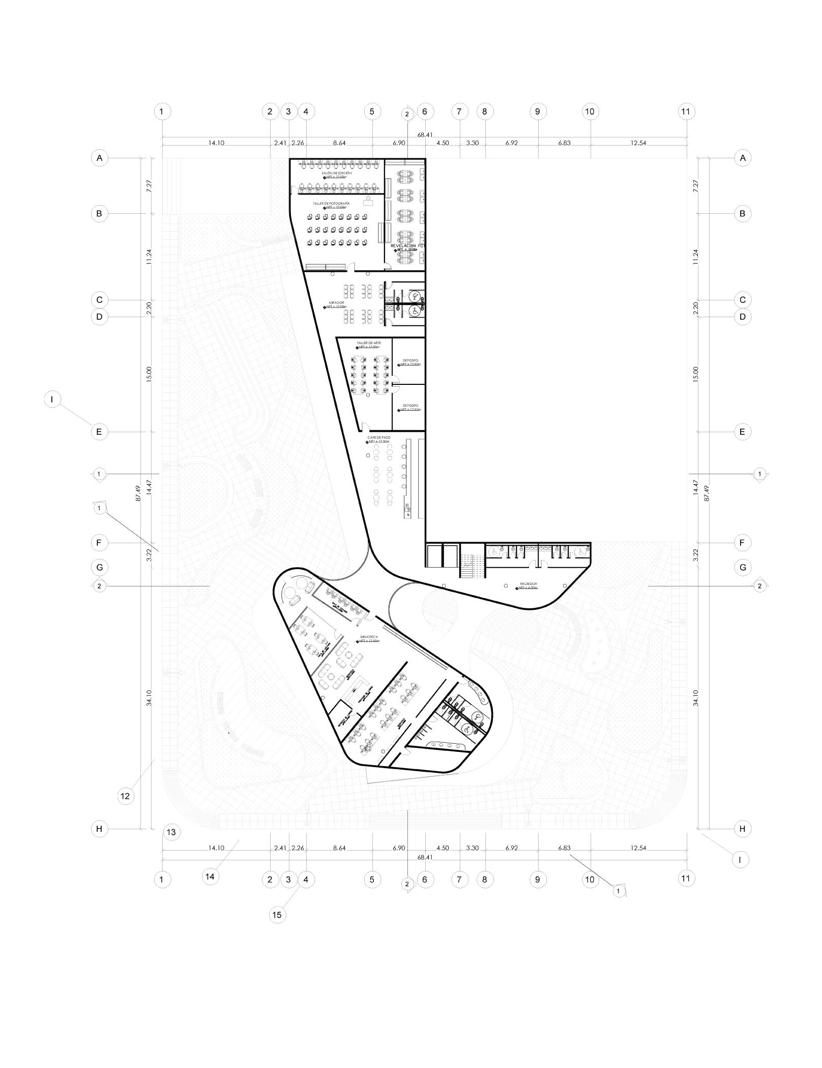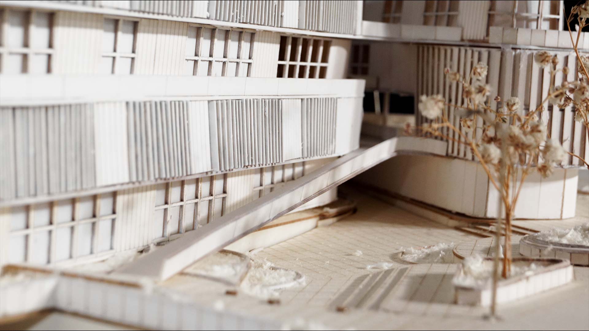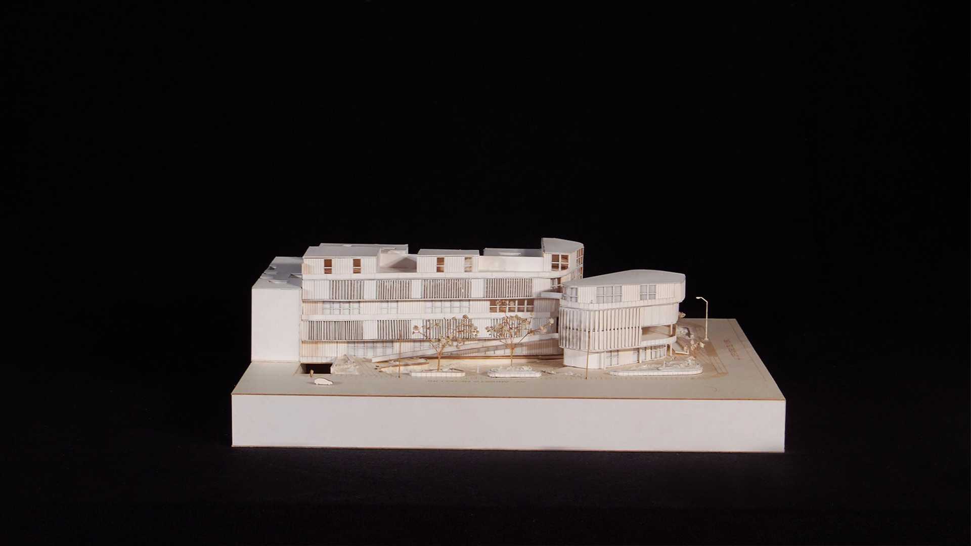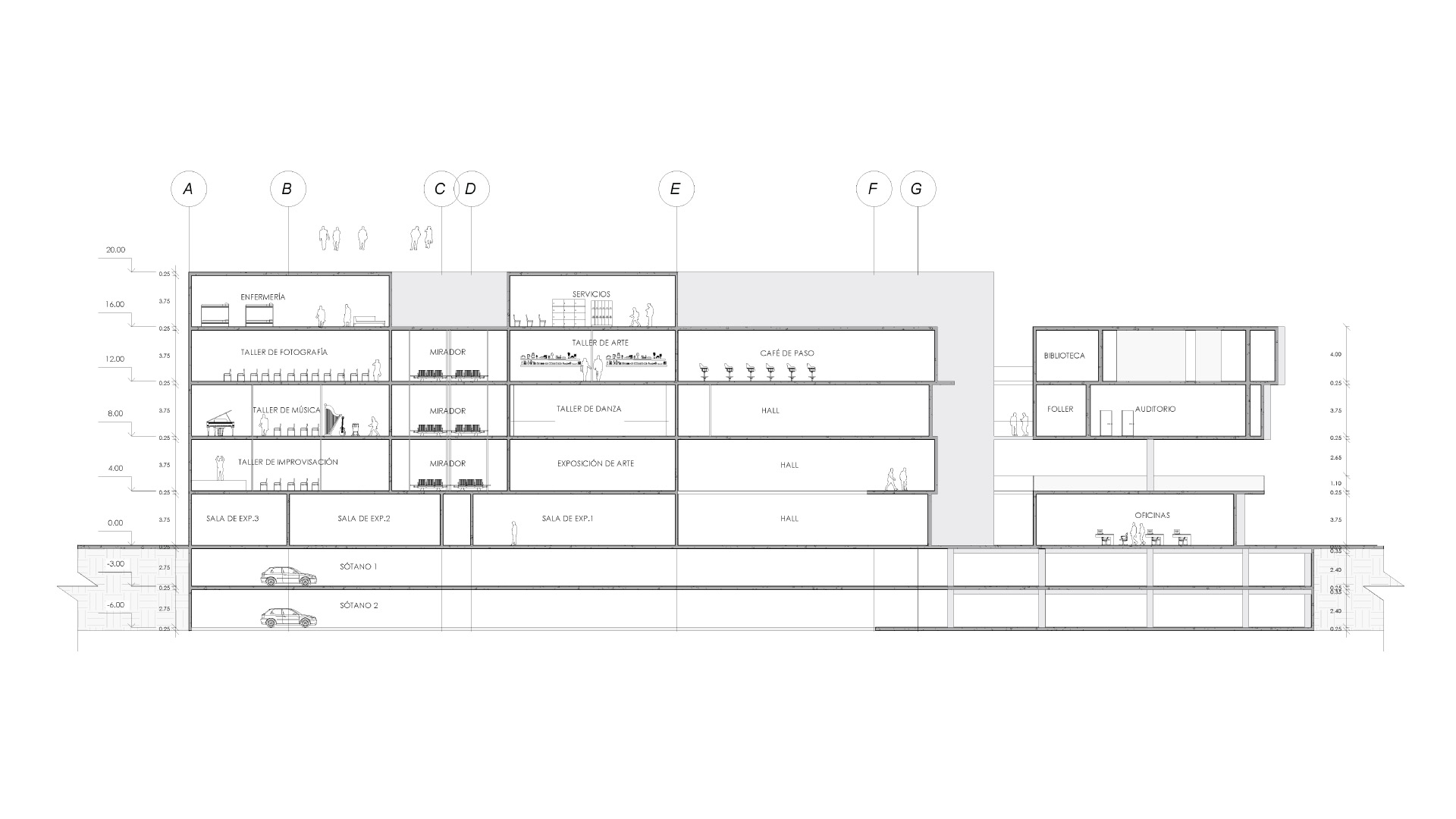 El proyecto propone un centro cívico que integra arquitectura y entorno urbano, de modo que se busca una fluidez espacial y funcional. El diseño se organiza a partir de un volumen principal que establece una clara separación entre los espacios públicos y privados, lo que permite una interacción fluida entre ambos. Con cinco niveles, el edificio utiliza desfases que generan terrazas, que conectan el interior con el exterior y crean espacios abiertos en diferentes alturas. Estos desfases funcionan como umbrales visuales y funcionales, y los niveles intermedios se enlazan a través de puentes, lo que promueve la continuidad y una circulación integrada.