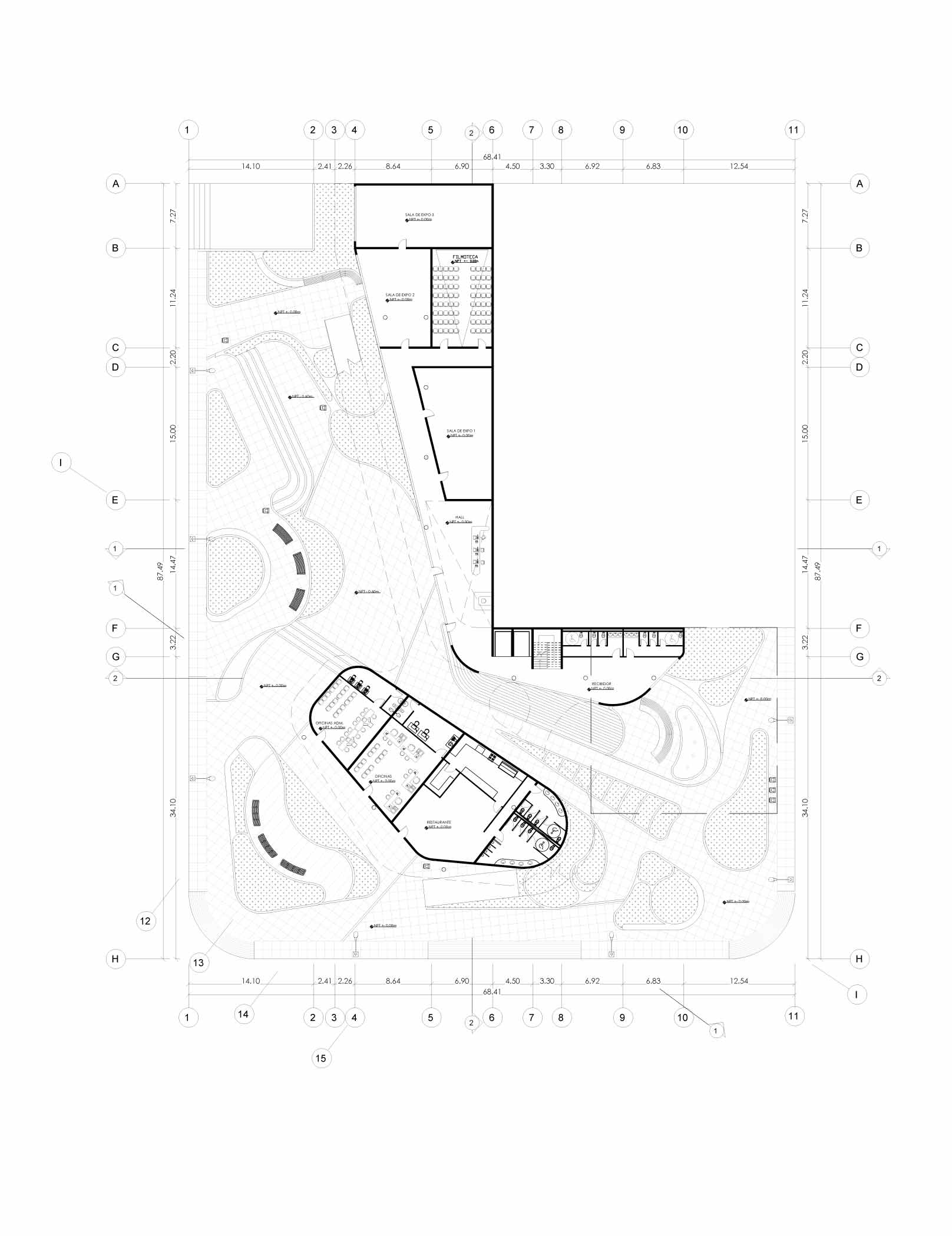 El parque circundante se concibe como una extensión natural del edificio, que sigue la misma geometría para crear un espacio accesible y fluido. Ligeramente elevado respecto a la calle, el parque se separa mediante un desnivel resuelto con escaleras y una rampa inclusiva, que garantiza la accesibilidad y seguridad. Este espacio público ofrece áreas para descanso, recreación y socialización, de modo que destaca una pileta de agua interactiva como elemento central, que invita al disfrute y la participación.