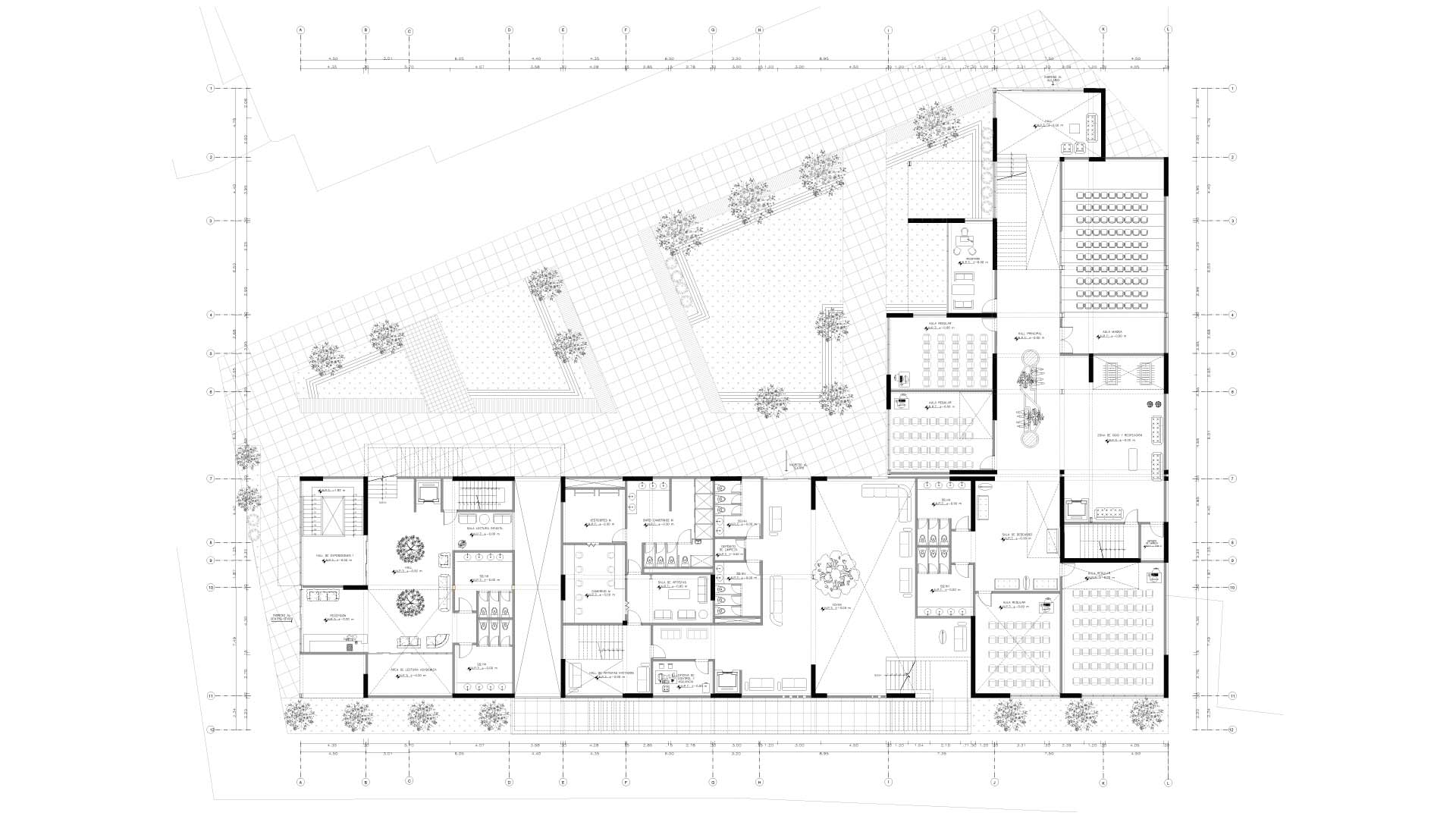 Además, se ha enfocado en la optimización de la circulación interna; con ello se asegura una conexión fluida entre los espacios públicos y las aulas. A través de la incorporación de espacios interiores y áreas de usos múltiples, se promueve un ambiente que invita a la interacción y al aprendizaje colaborativo.
