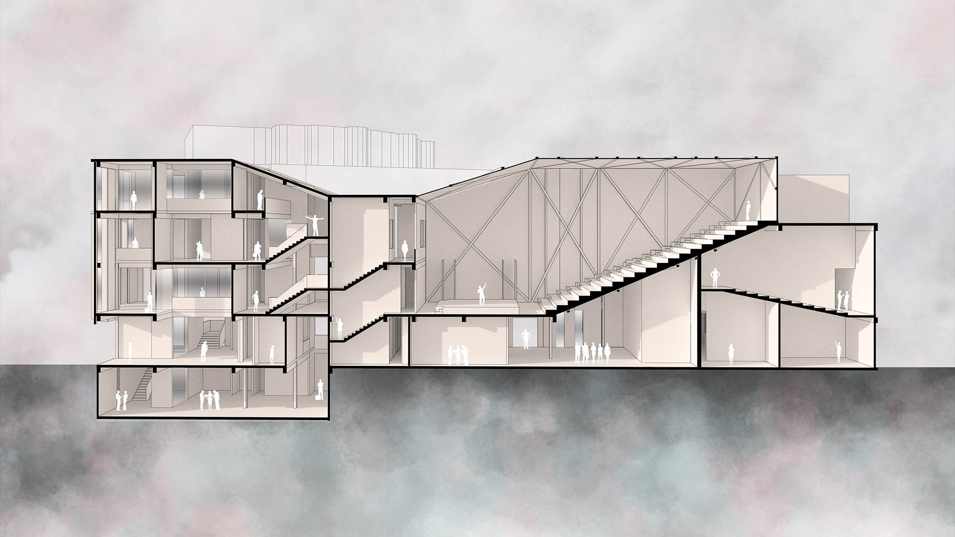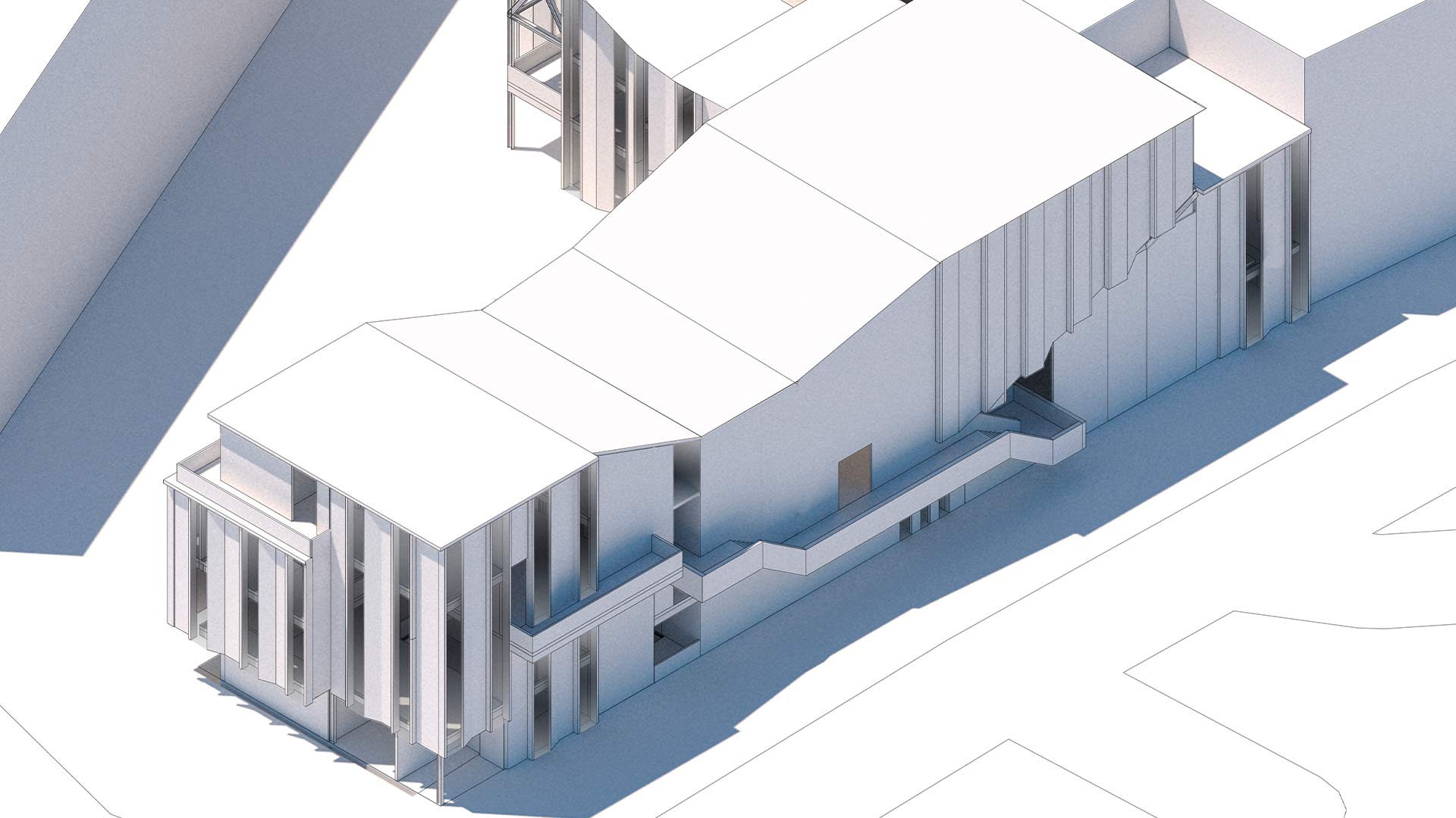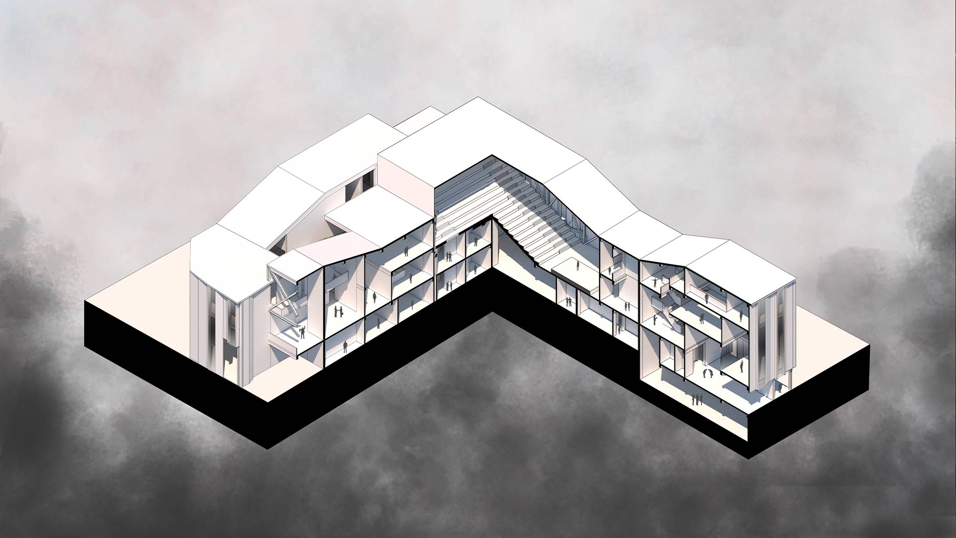 La envolvente del edificio refleja el concepto de apertura y accesibilidad, utilizando un juego de volúmenes que enfatiza la profundidad y la proximidad con el entorno circundante. Este diseño no solo busca mejorar la funcionalidad del espacio educativo, sino también fomentar una relación dinámica entre lo público y lo privado; se enriquece así la experiencia de los usuarios y promueve la comunidad educativa en su conjunto.