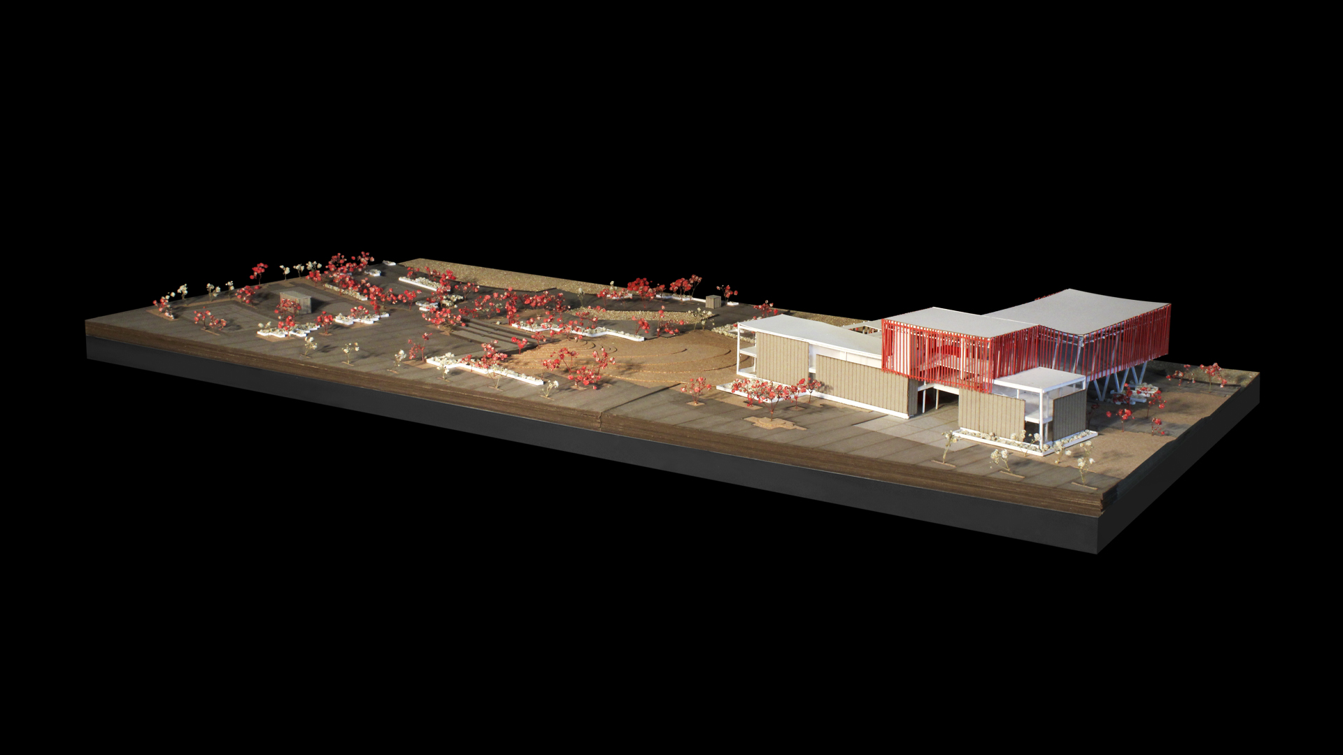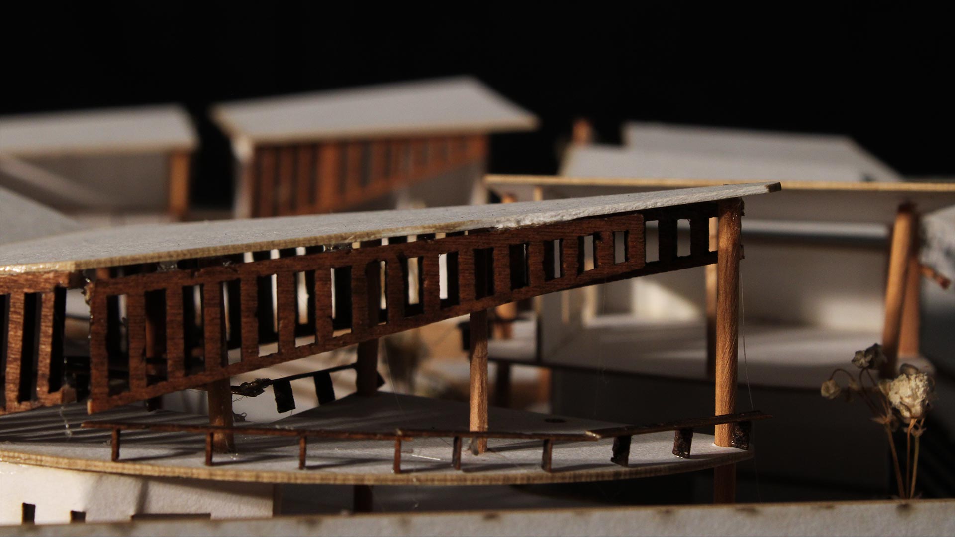 El proyecto es muy transparente para generar una relación fuerte con los elementos naturales, pero los muros cortina están colocados hacia los focos visuales para proteger los espacios; además, se colocaron celosías de madera en las fachadas más expuestas al sol.