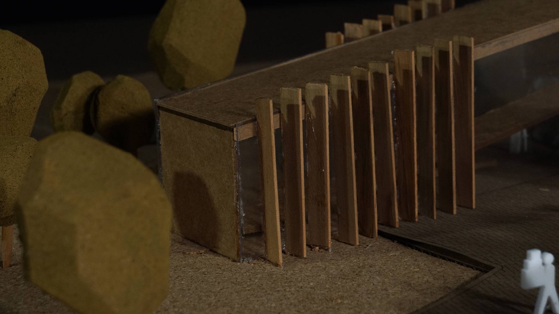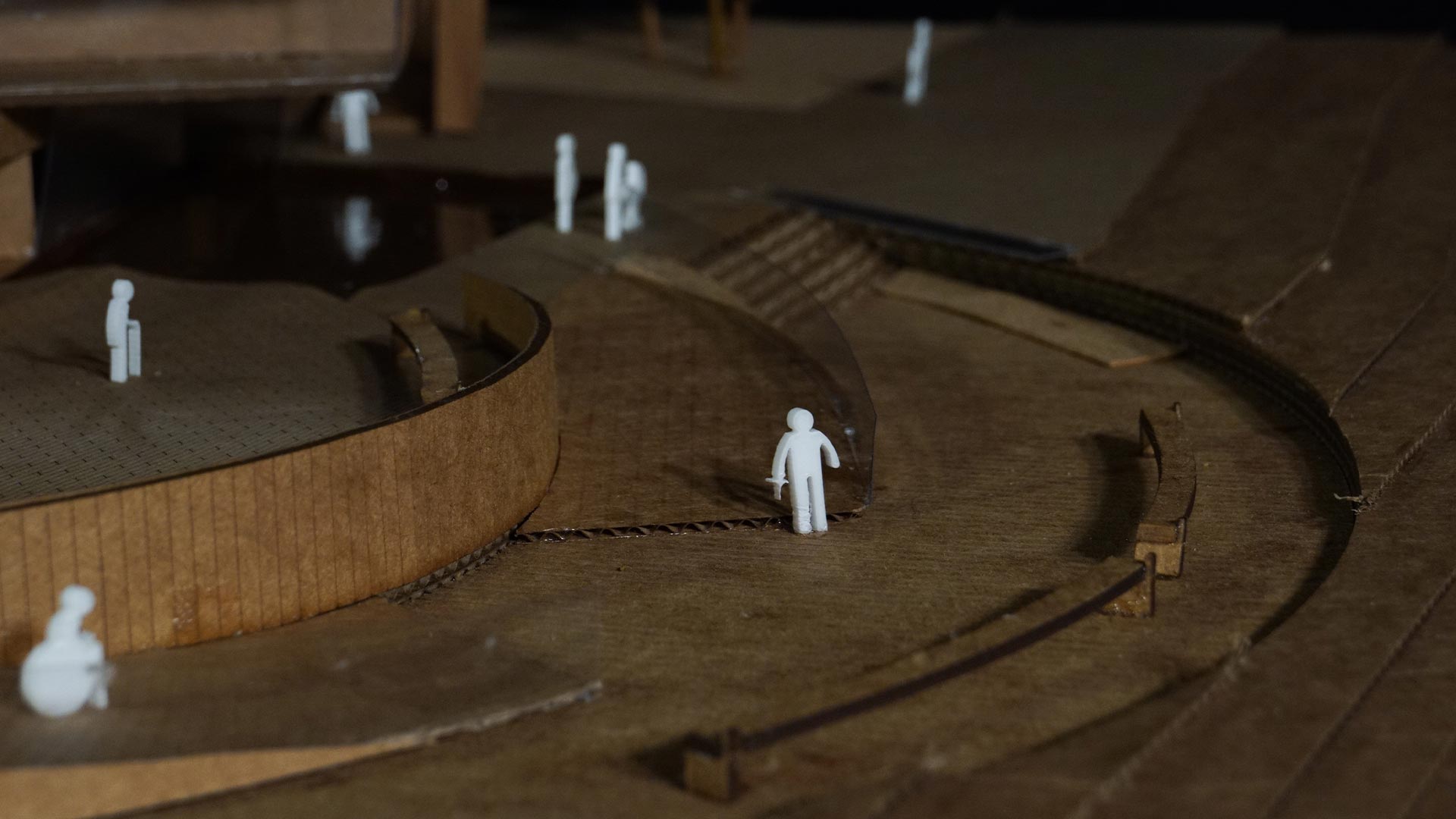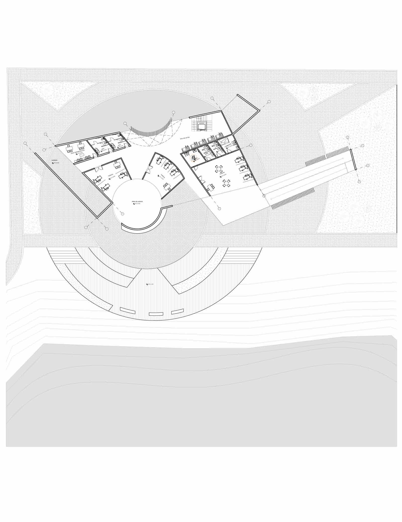 El proyecto, inspirado en la escultura Intihuatana de Fernando Syzlo, se transforma en un centro de terapia y talleres para niños con discapacidad física, que destaca por su coherencia conceptual y diseño sólido. La maqueta, caracterizada por una estructura predominantemente rectilínea combinada con sutiles curvas, sobresale por estar parcialmente rodeada por un lago, del cual emergen algunos de sus muros principales y celosías. Este detalle añade un toque de elegancia y singularidad al proyecto.