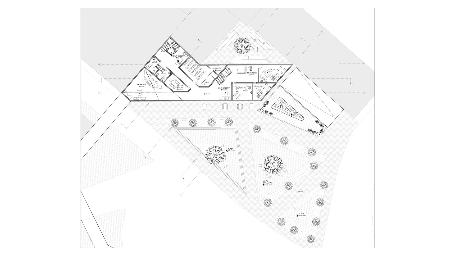 Al definirse el programa para este edificio de oficinas y usos mixtos, se optó por posicionar el comercio en el nivel 0 mientras que el paquete de oficinas se ubicó en los niveles 1, 2 y 3. Cabe resaltar que el proyecto cuenta con un puente que conecta la planta +4.00 del edificio con la planta +4.00 de una galería de arte.