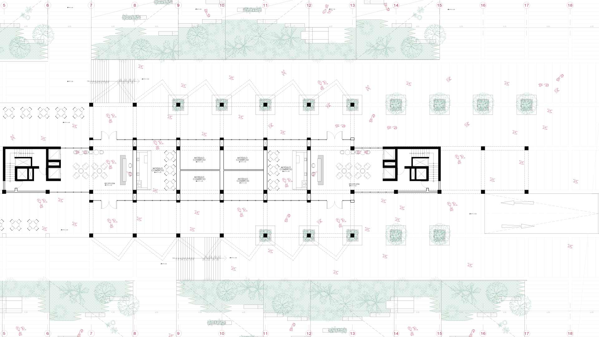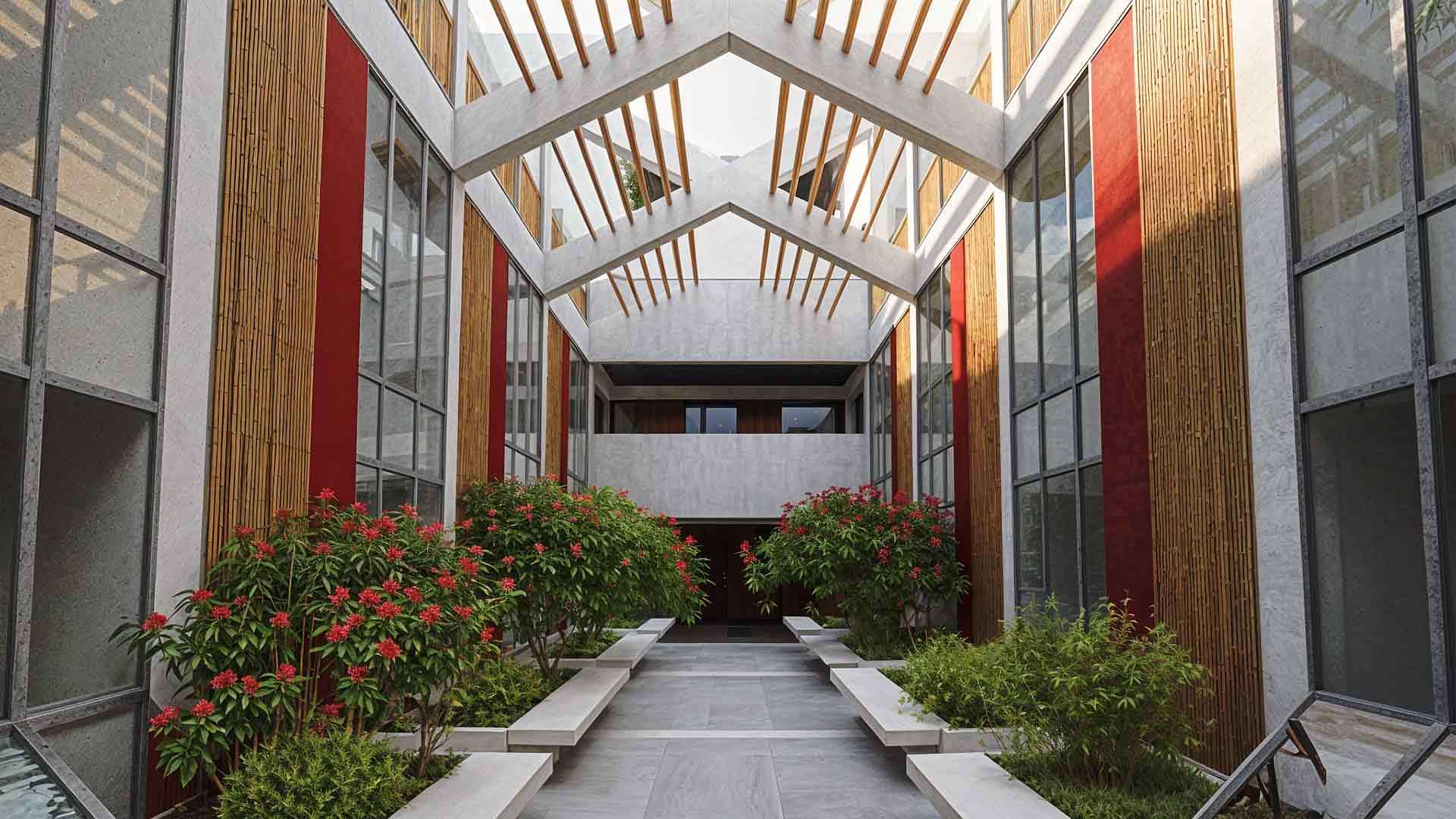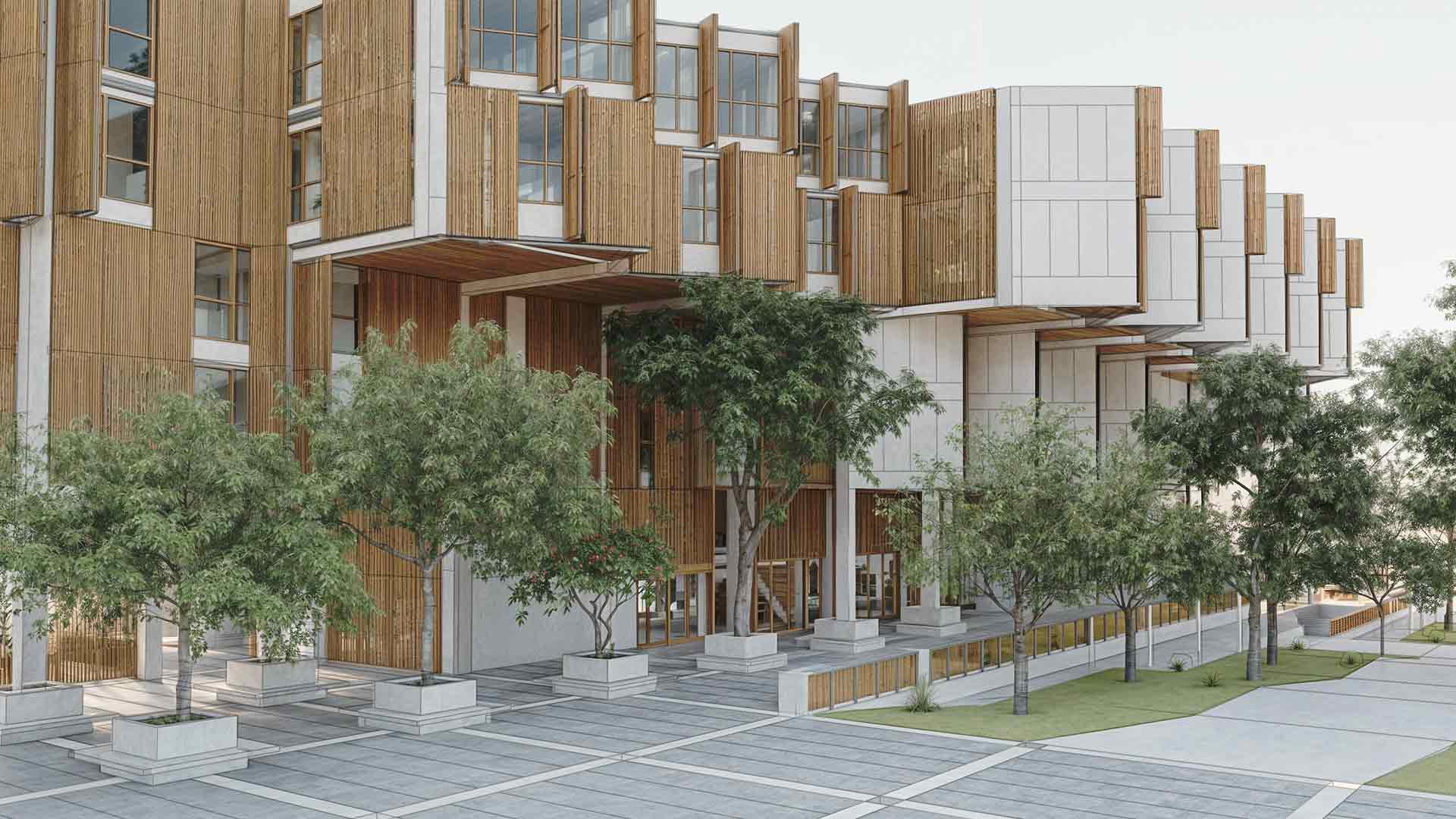 La fachada combina celosías de carrizo y muros de concreto diagonales, que ofrecen una estética cálida y resistente al clima costero. Este proyecto no se limita a ofrecer viviendas, sino que propone una nueva manera de habitar, donde los límites entre lo público y lo privado se desdibujan, y la arquitectura se convierte en un catalizador de conexiones y experiencias compartidas.