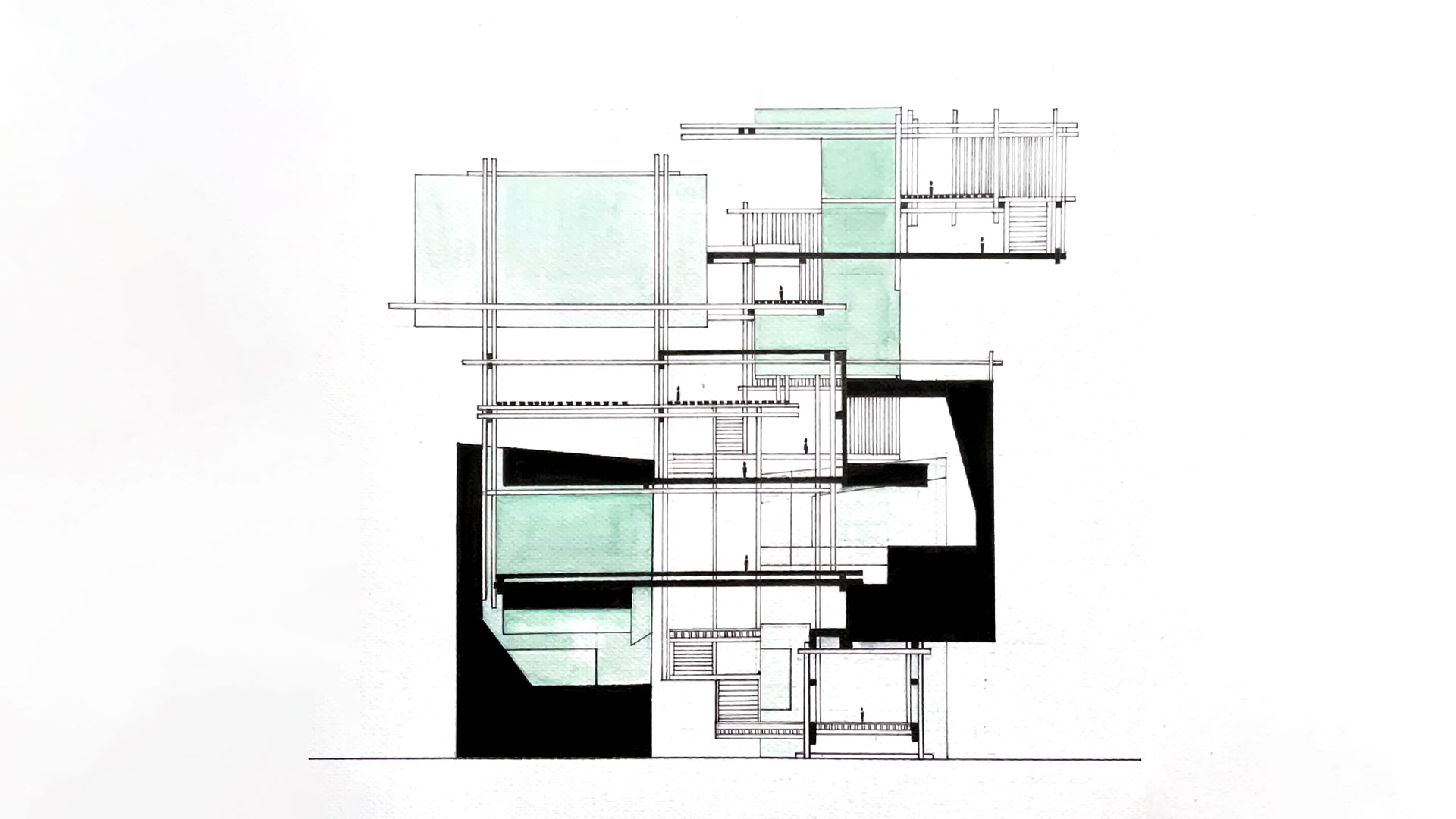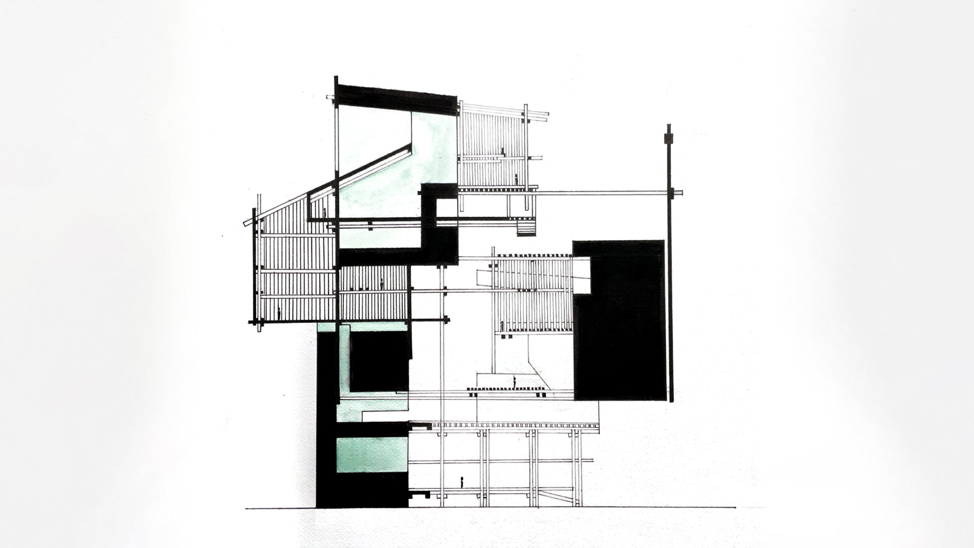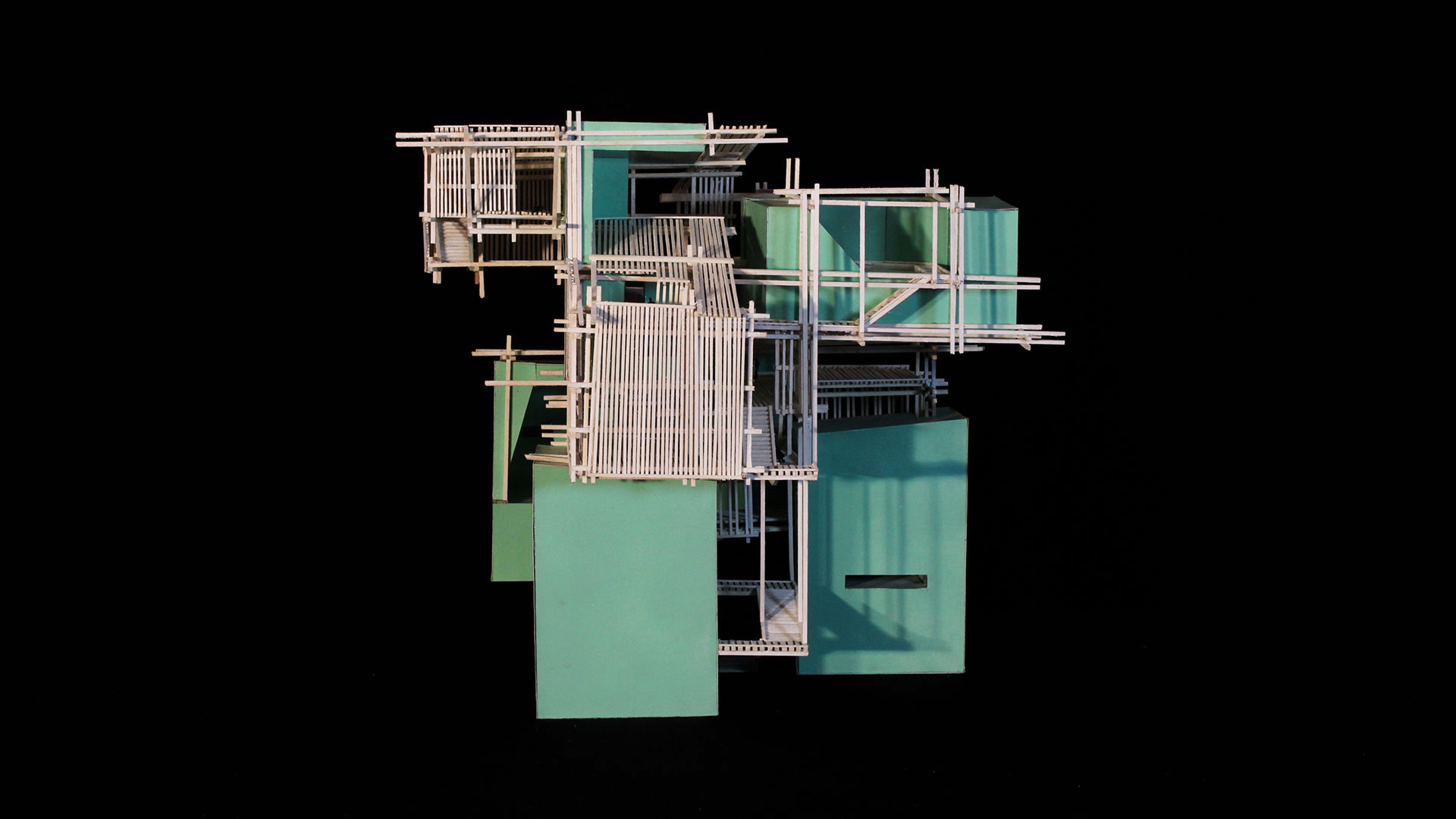 Además, se establece una coherencia secuencial de espacios enlazados por un recorrido determinado por elementos conectores, como escaleras y corredores. De esta manera, las varillas estratégicamente posicionadas no solo delimitan y generan los nuevos volúmenes arquitectónicos, sino que también desafían la gravedad respecto a las piezas preexistentes ubicadas en múltiples direcciones, de modo que aumentan la riqueza espacial y visual del proyecto.