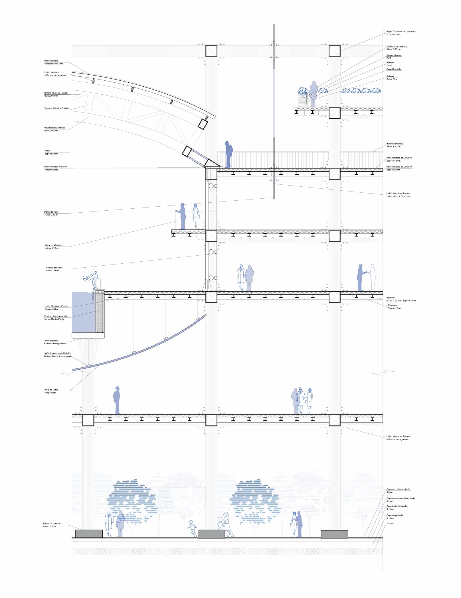 Este proyecto se concibe como un espacio público vertical, un conjunto de eventos integrados en un mismo lugar. La propuesta busca mantener alturas de gran escala para preservar la sensación de amplitud que experimenta el usuario al ingresar al edificio, comparable con la del extenso parque del Campo de Marte, ubicado frente a la edificación. El diseño abierto del edificio permite una alta permeabilidad visual y funcional, lo que lo convierte en un mirador natural del Campo de Marte.
