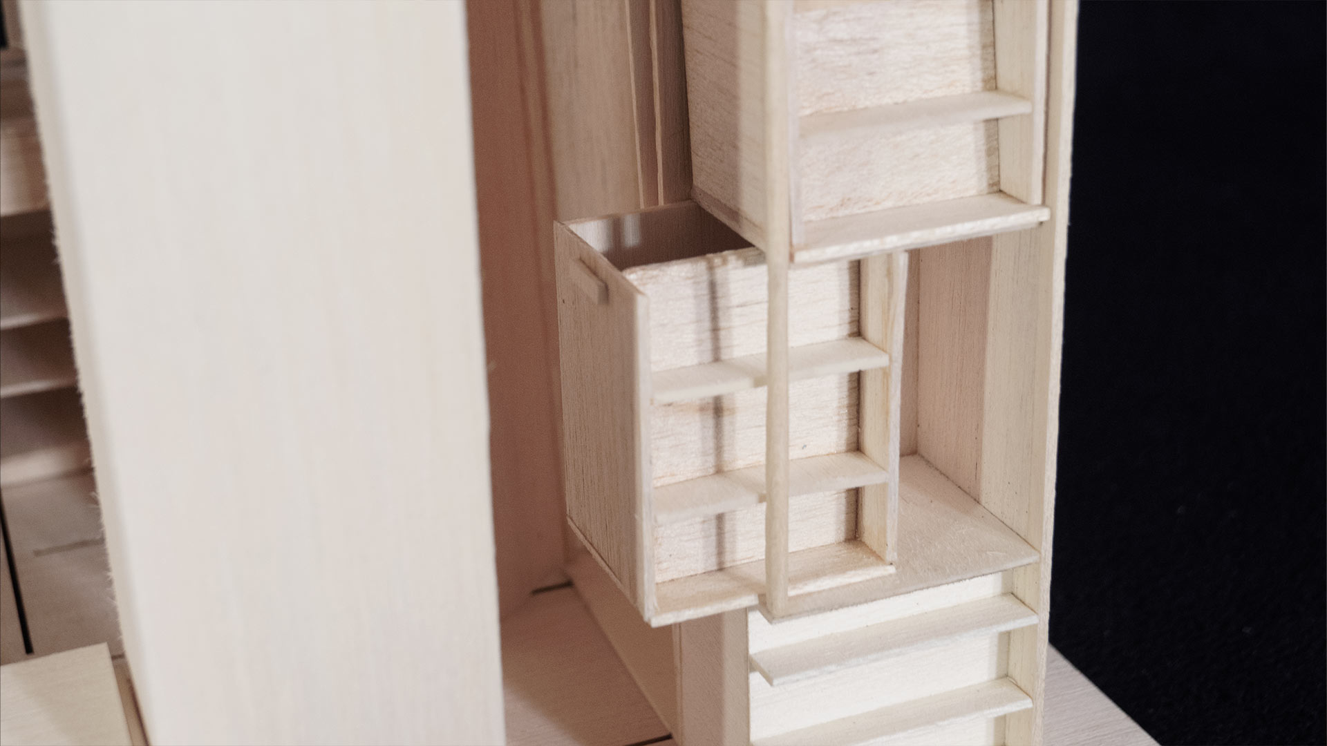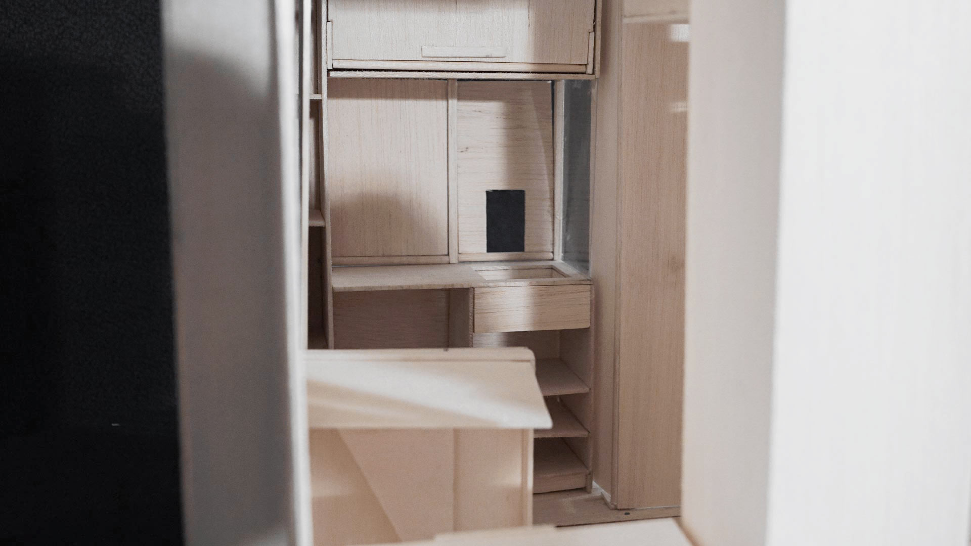 La distribución del espacio responde a las actividades diarias del usuario, como higiene, descanso, estudio y alimentación. Además, el diseño permite la coexistencia de un visitante de distinto género, de modo que integra soluciones que respeten la individualidad y privacidad de cada usuario. Todos los mobiliarios y sistemas fueron elaborados con distintos tipos de madera, con el fin de aportar calidez y estabilidad al habitáculo.
