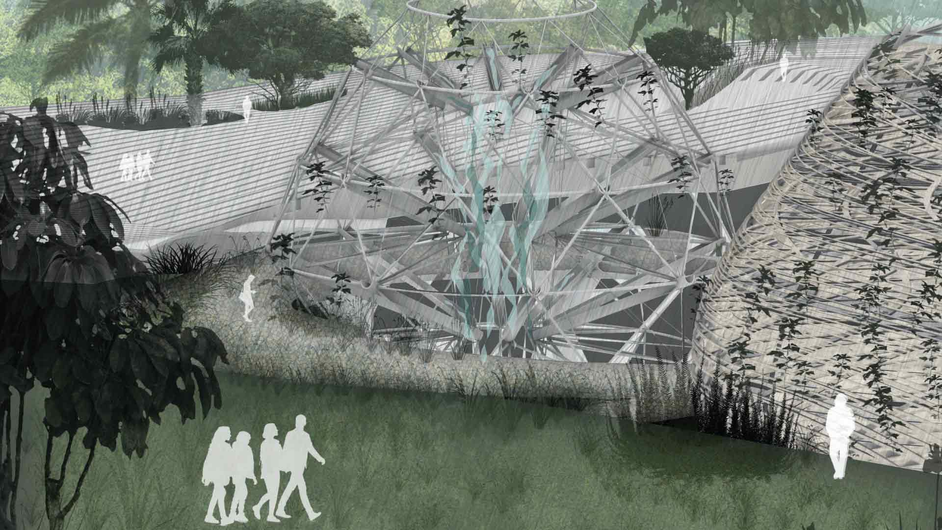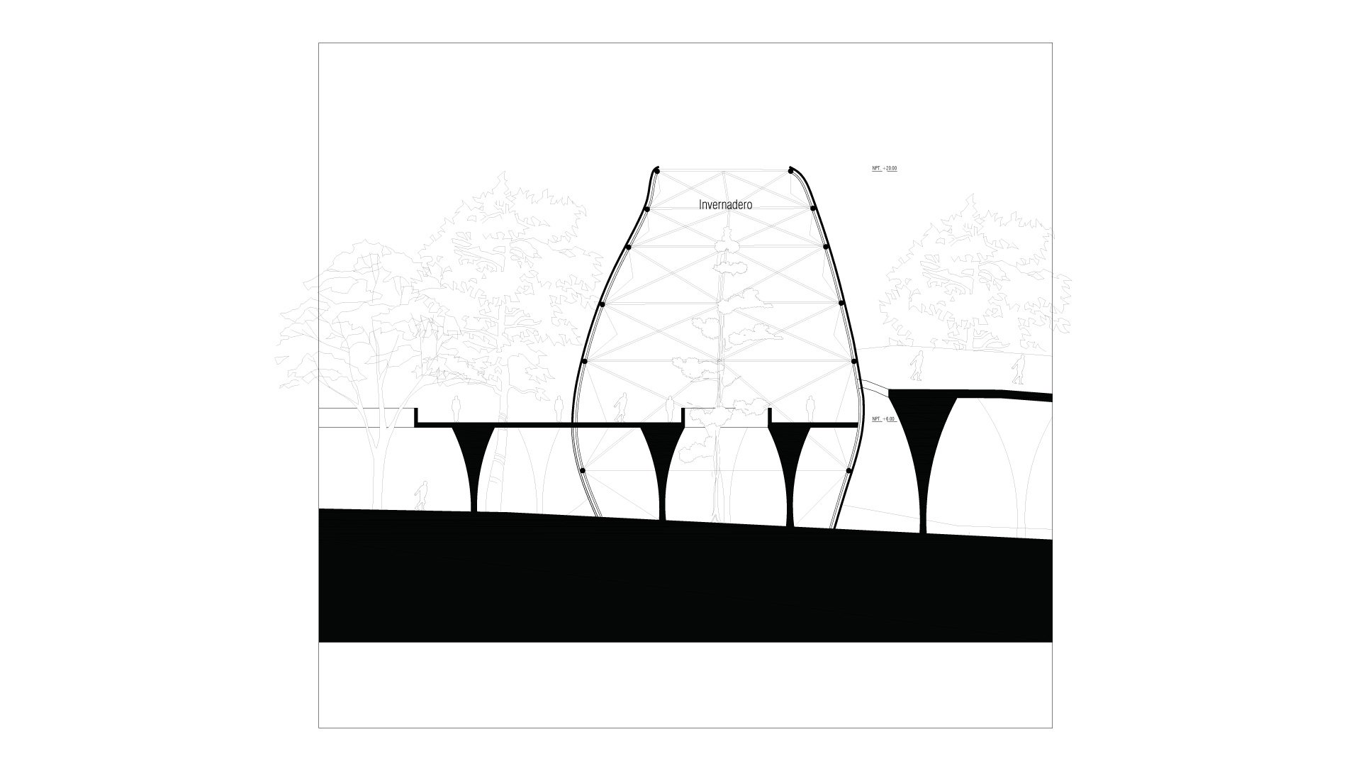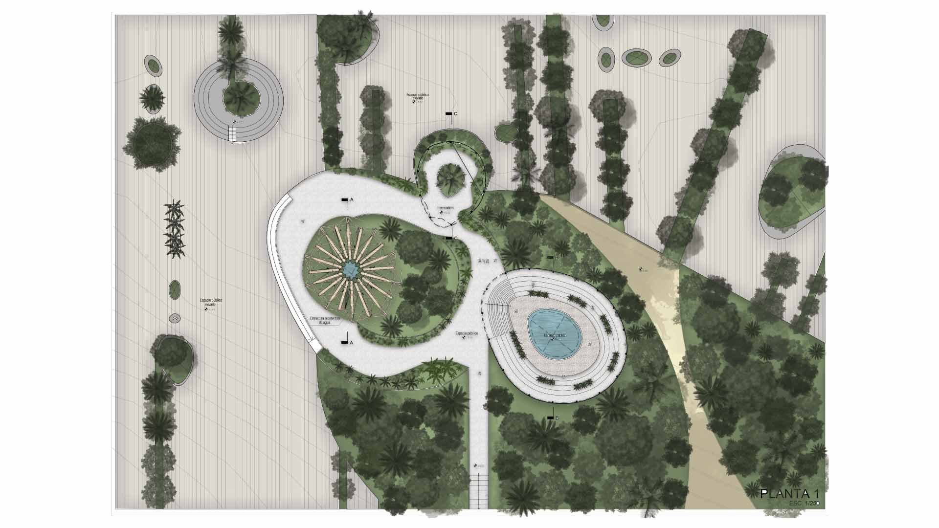 Se ha desarrollado una plataforma elevada que sigue la topografía del terreno que funciona como un gran espacio público «parque», con sustracciones que permiten que la vida existente debajo de esta plataforma continúe prosperando. Este enfoque facilita la rehabilitación del área con nueva vegetación, y crea un entorno más resiliente y ecológicamente equilibrado.