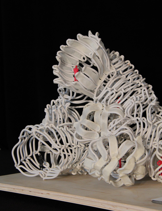Su estructura ha sido fuente de inspiración para crear un entorno espacial multifuncional. El proyecto presenta nueve espacios diseñados para exponer las diversas funciones observadas en las características de la especie. El espacio de descanso es cerrado y elevado, se presenta una contigüidad con las zonas de reproducción y protección. Además, el espacio de reproducción ocurre en un área cerrada, seguida por la zona de crianza, que es un espacio independiente.