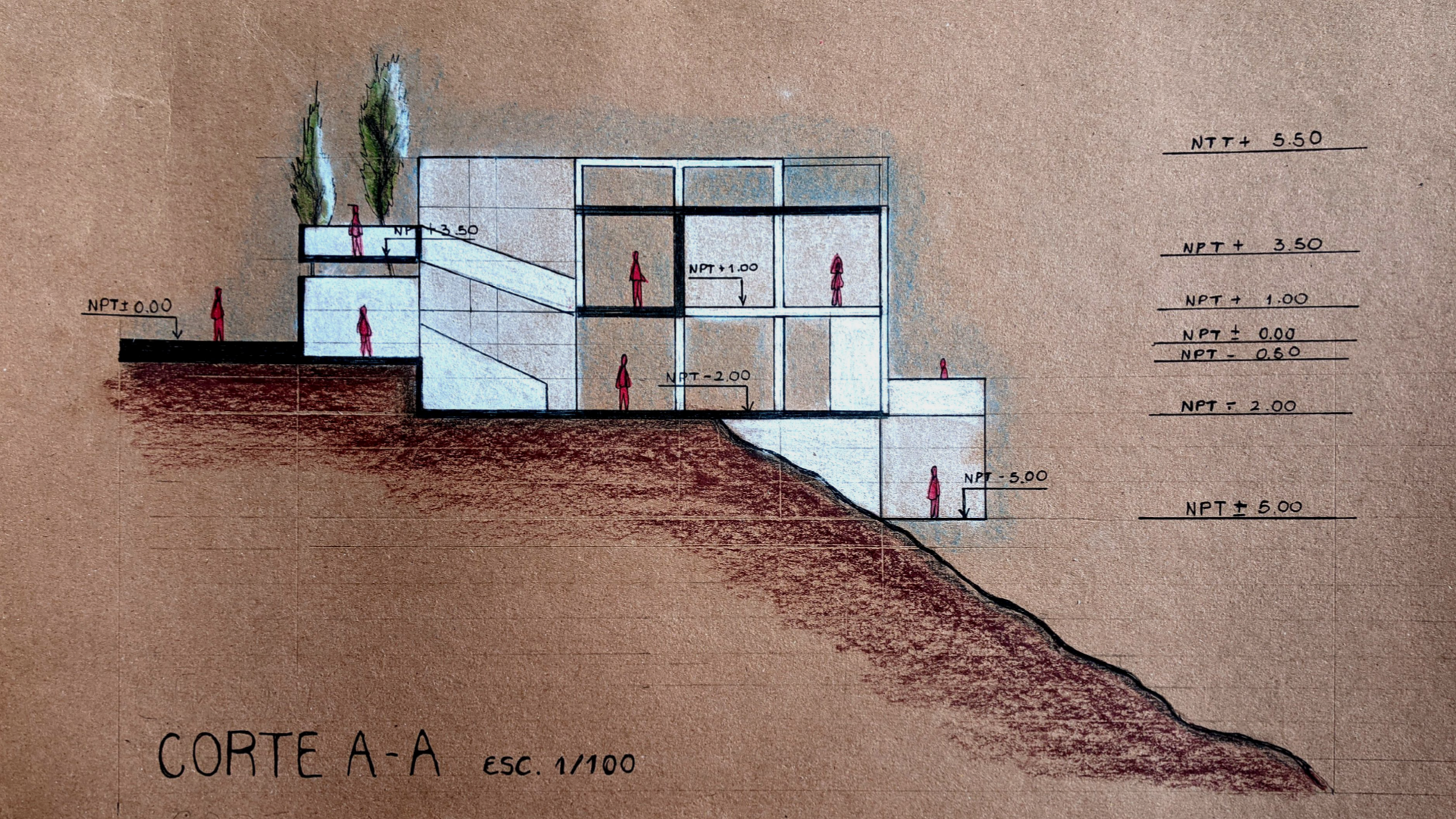 La decisión de no aplicar la grilla en las circulaciones exteriores surgió de la necesidad de adaptar el espacio al paisaje circundante y garantizar un acceso eficiente. Las circulaciones exteriores funcionan como un puente entre el edificio y su entorno, a fin de asegurar una transición natural. De esta forma, se equilibró la estructura modular de los espacios interiores con un acceso exterior más libre y adaptado al contexto urbano.
