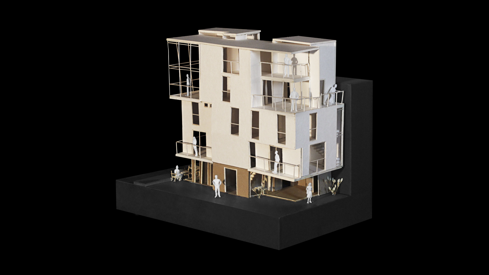 Finalmente, tras determinar la forma del proyecto mediante los métodos mencionados, se debía implementar el uso propuesto a la obra, que fue distribuir un programa ya establecido en los espacios creados en nuestra escultura. En este programa, se encontrarían aquellos espacios públicos (exhibición, cafeterías, SUM, etcétera), los privados (talleres, sala de profesores, depósitos y aulas), los administrativos y el recorrido. Para esto, ciertas áreas del proyecto se debieron cerrar, y otras, reorganizar para crear nuevos espacios de manera que aún sea fiel a la imagen de síntesis y permita el desarrollo del trabajo final.