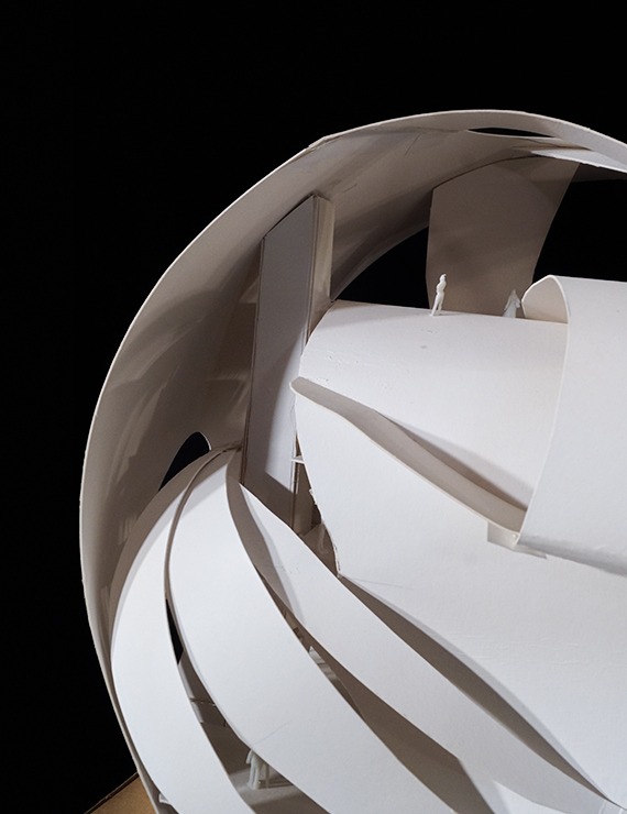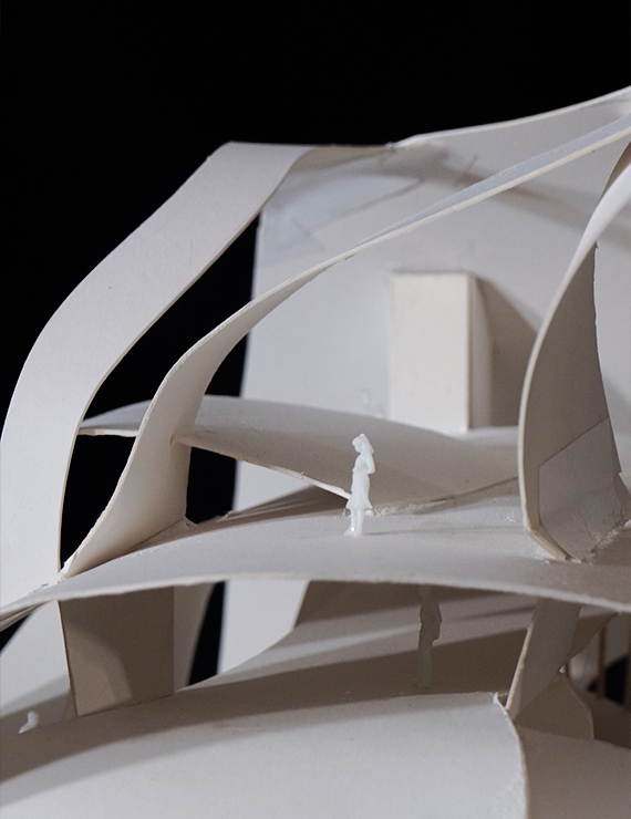 A partir de ello, se obtiene una imagen de síntesis, la cual permitió el desarrollo de una escultura arquitectónica. Es necesario recalcar que esta escultura no se obtuvo al extruir las líneas conseguidas, sino al interpretarlas de manera tridimensional; es decir, estas pueden atravesarse desde diferentes puntos.