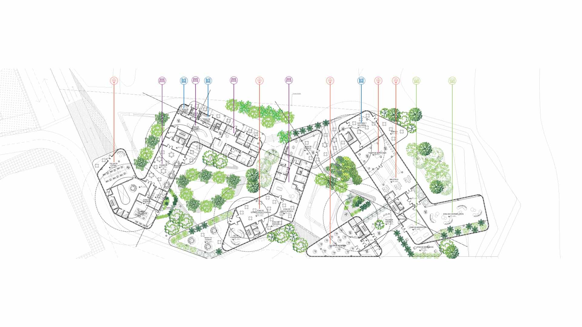 El objetivo de este proyecto es mejorar la calidad de vida, al promover la interacción social y el desarrollo personal de los habitantes, así como fomentar su autonomía e independencia. En los niveles inferiores del proyecto están los servicios públicos y comerciales tanto para residentes como visitantes. En los niveles superiores, las áreas residenciales y talleres están conectados mediante áreas comunes y espacios de descanso que fomentan la interacción entre vecinos.