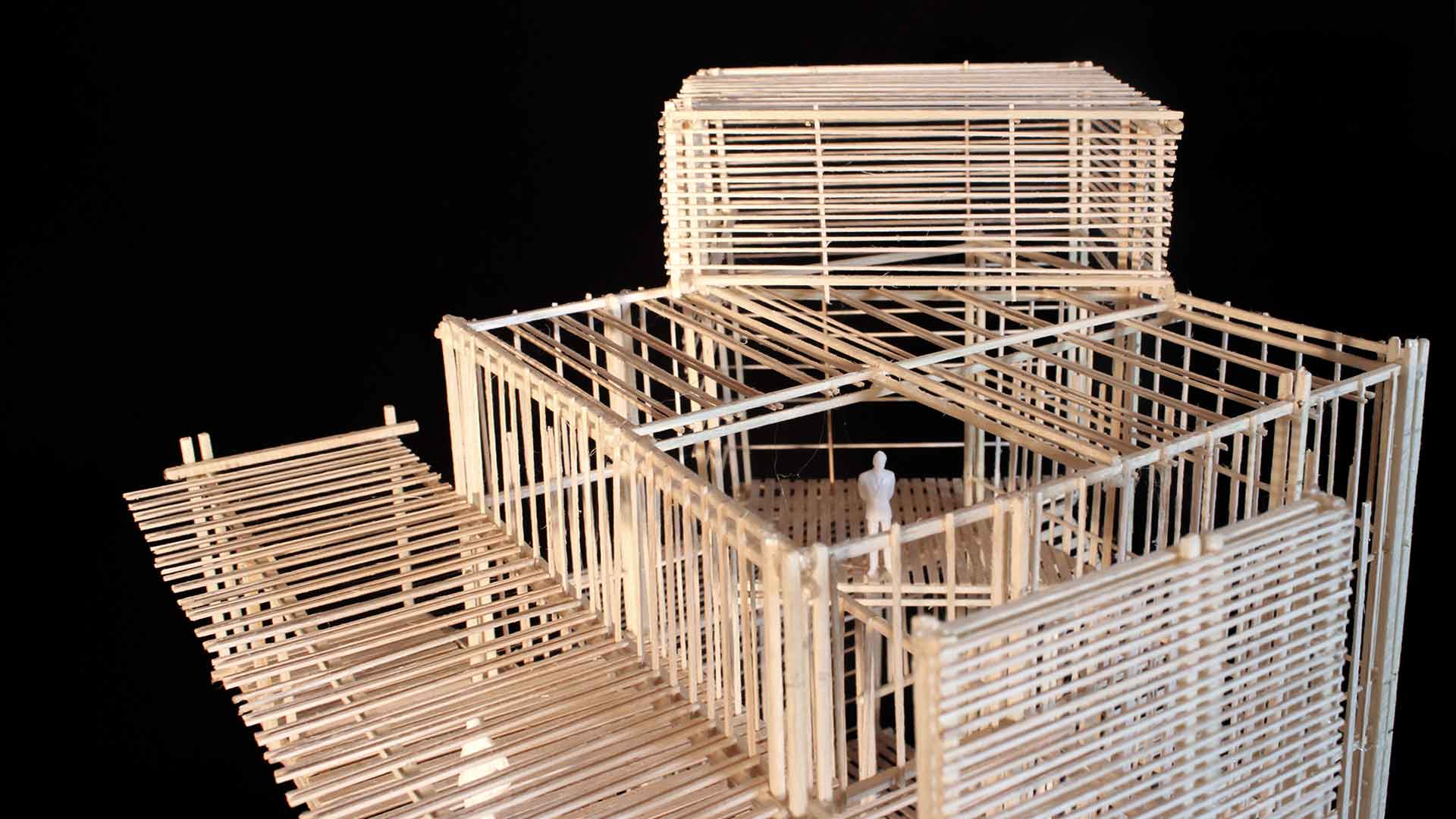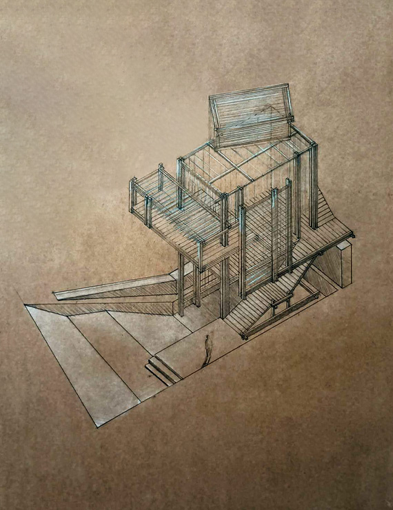 El proyecto Mirador de Puruchuco se organiza en un recorrido de cinco espacios, divididos en una parte estereotómica y otra tectónica, estructurada con pilares de madera. Estas áreas están equipadas con celosías que redireccionan la luz según las necesidades de cada espacio.