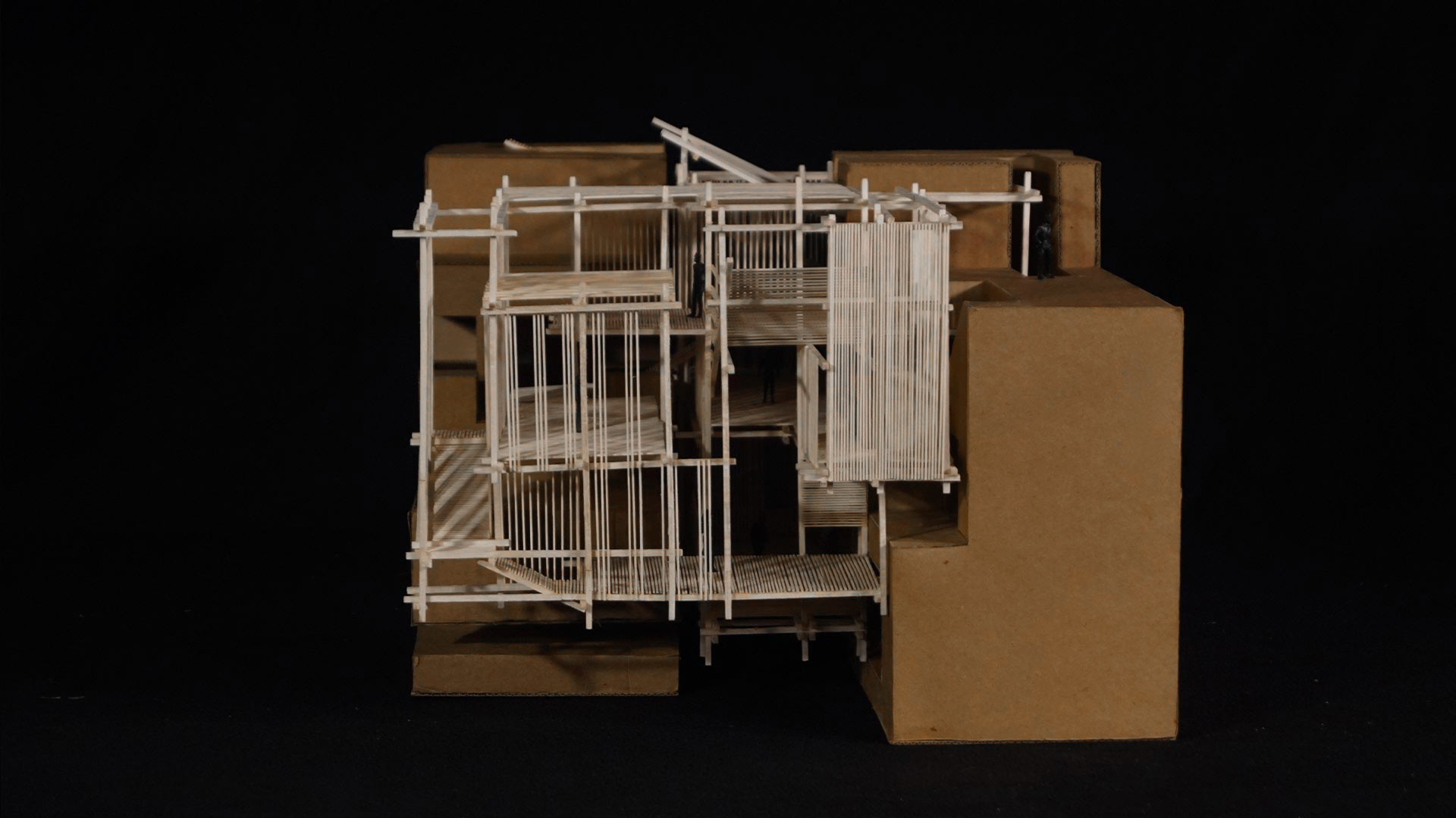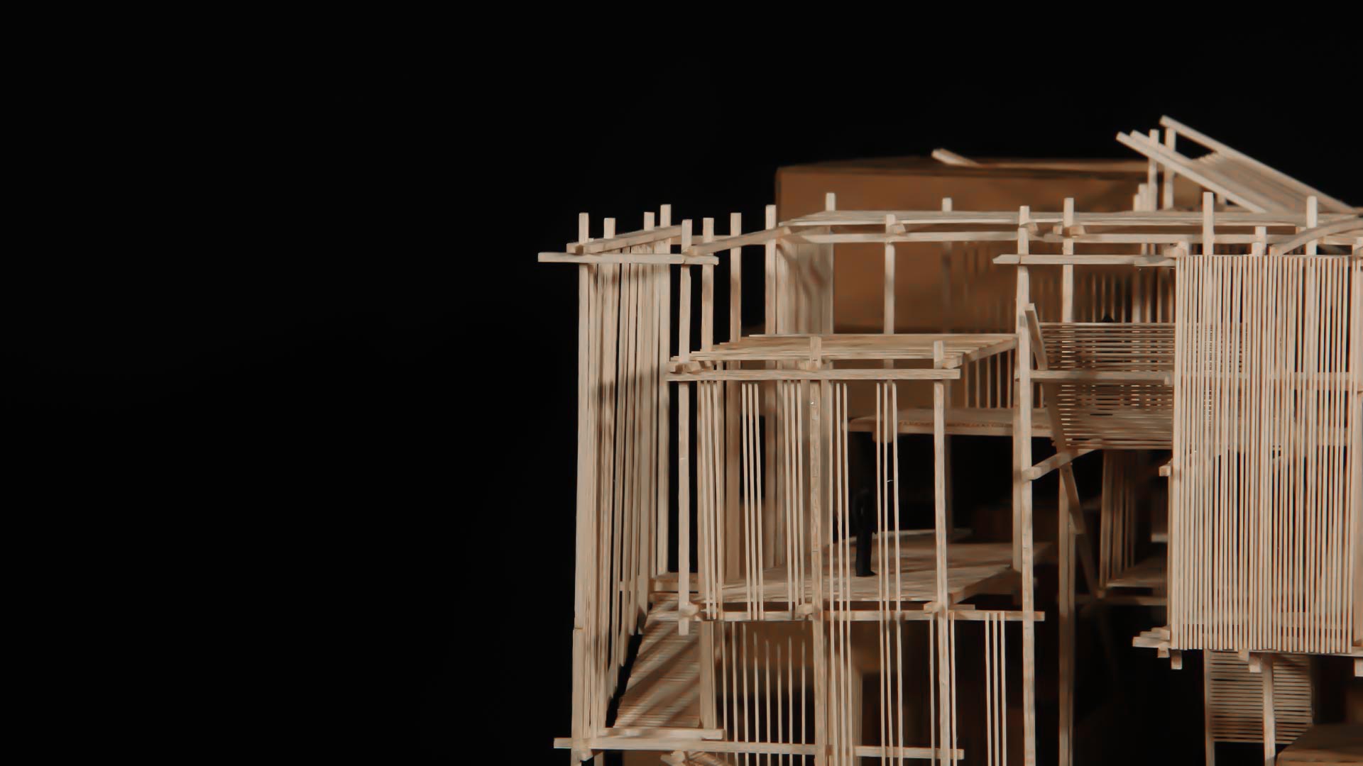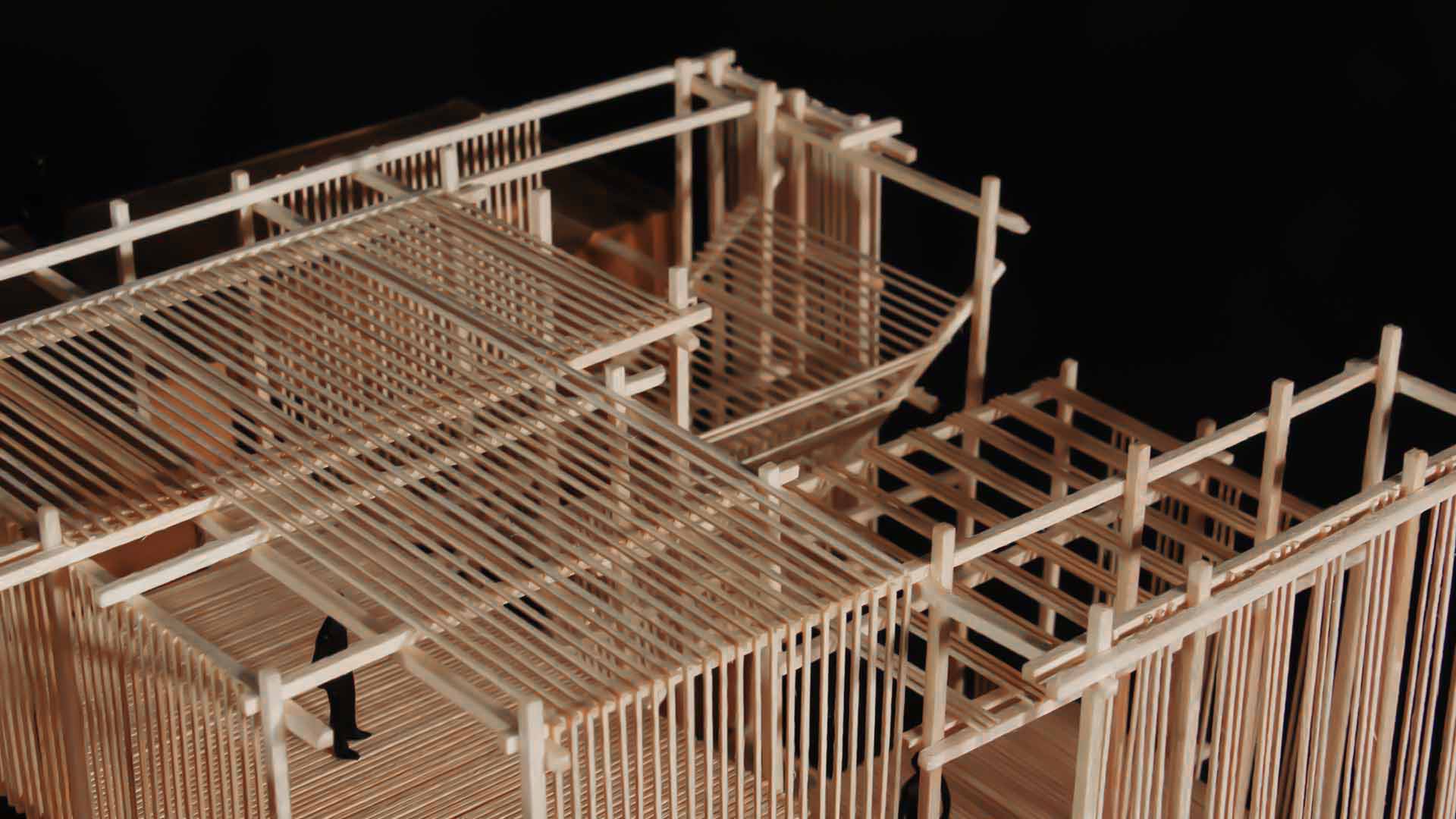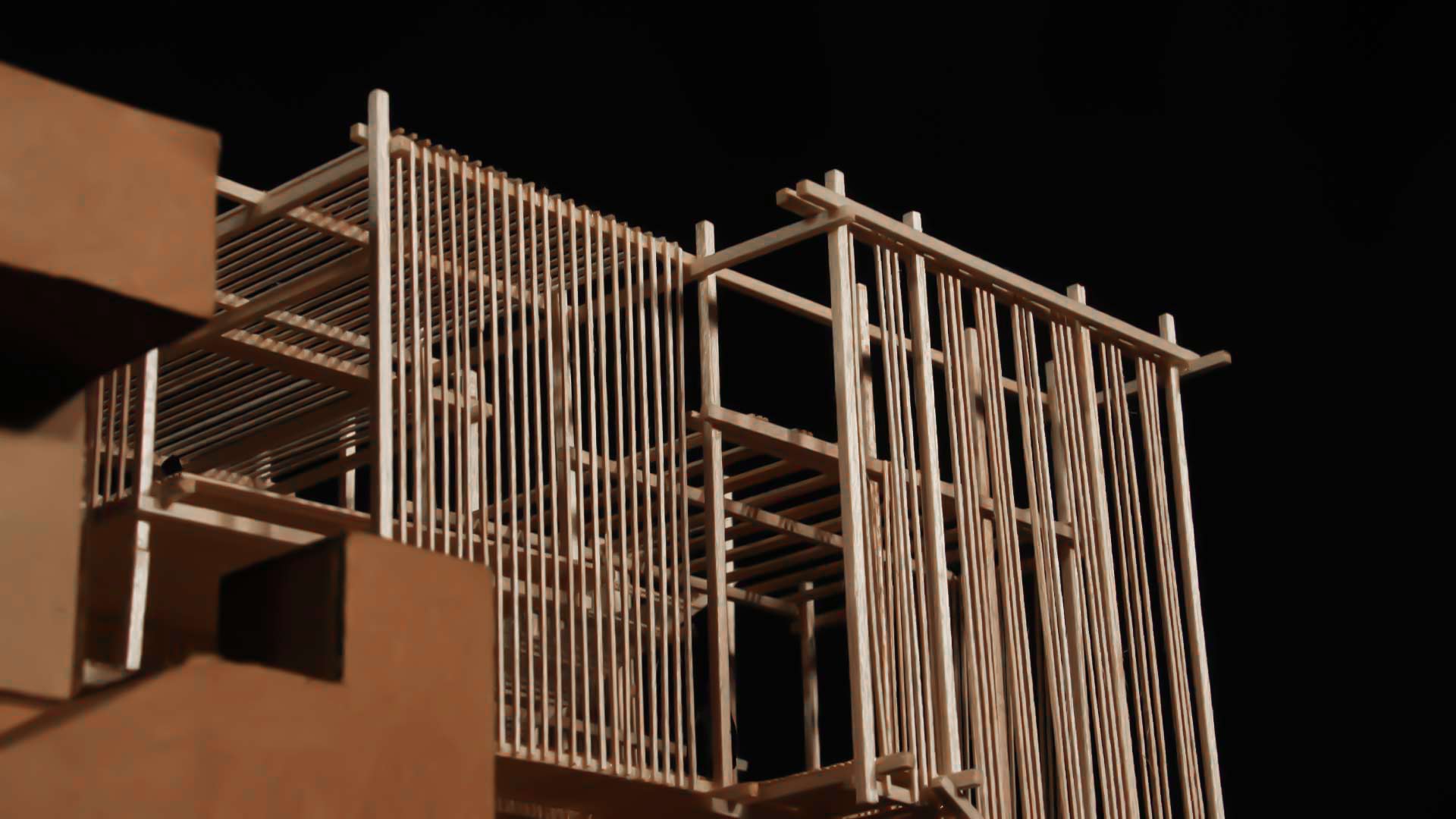 El material utilizado para este último trabajo es lo que le da la versatilidad al proyecto, ya que las varillas de madera balsa son las que permiten no solo tener una estructura ligera pero bien delimitada, sino que también ayudan con las vistas de cada espacio y con el juego de cerramientos para volver al proyecto más vistoso.