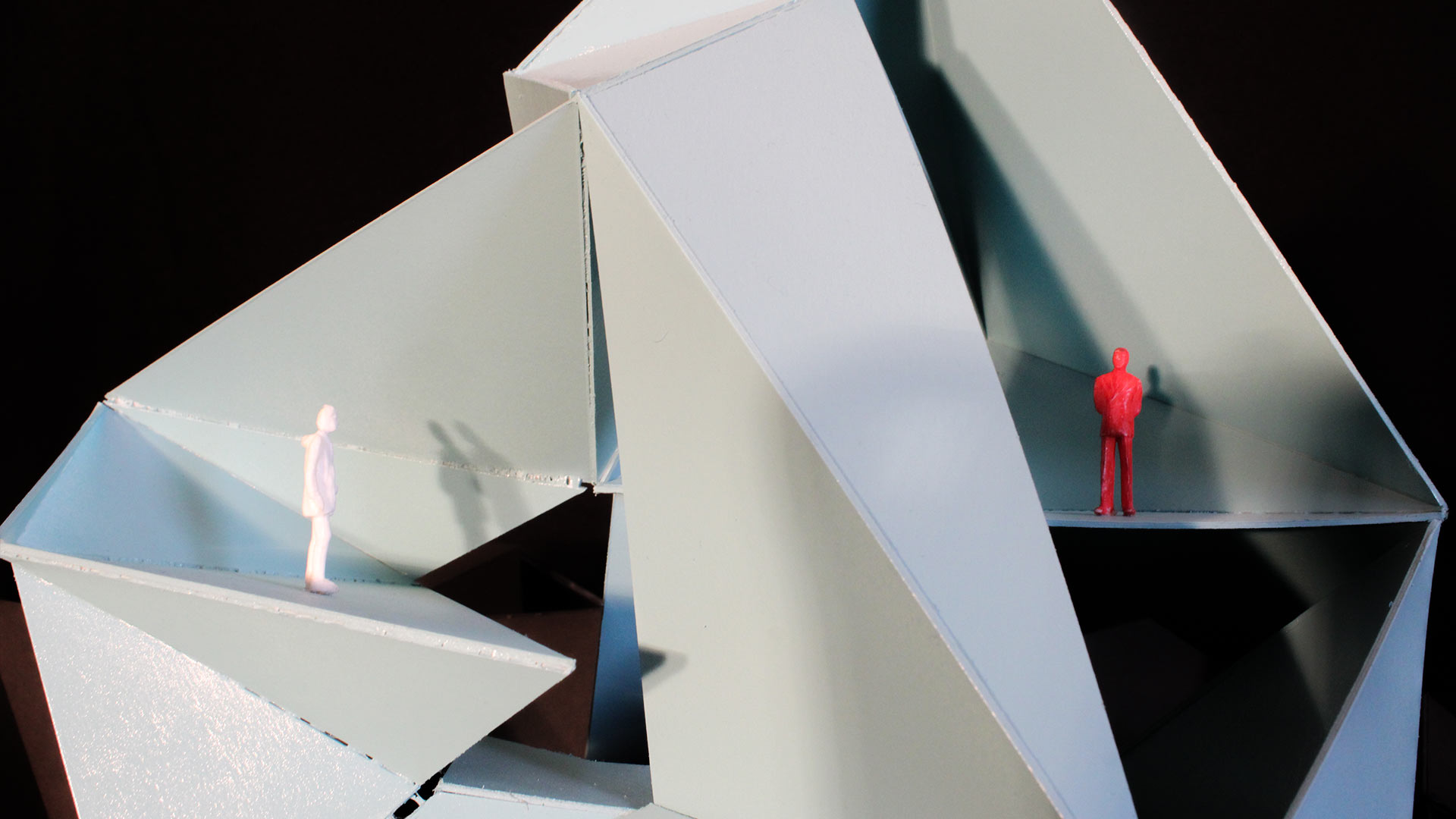 El espacio de reunión que da inicio al recorrido se encuentra frente al habitáculo, pero aun así solo se observa la cima de él a través de la entrada de luz del espacio. Al continuar el recorrido, el usuario descubre el camino oculto por los quiebres, que debe seguir para ver las nuevas partes del habitáculo que estaban ocultas por el territorio que contiene los caminos.