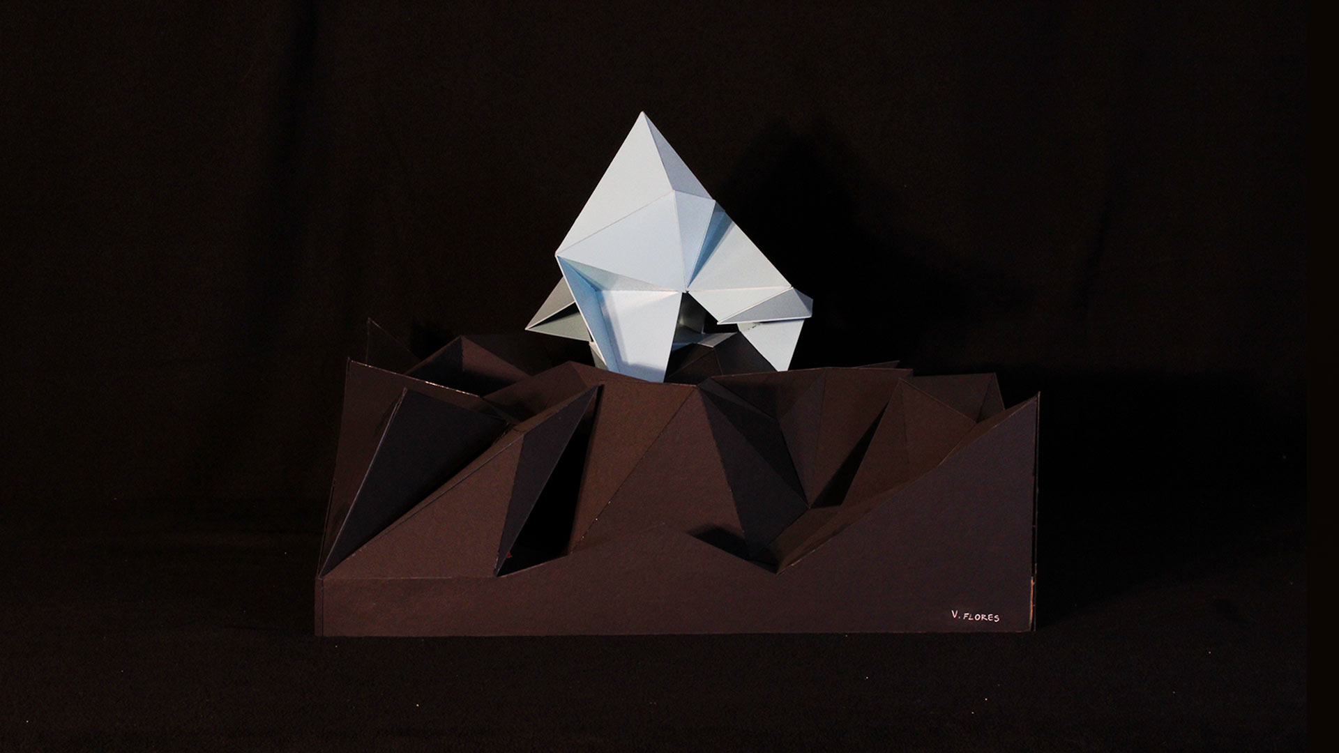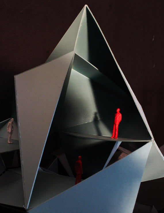 Diseñado con una composición geométrico-espacial mediante la conexión de vértices suspendidos dentro de una grilla tridimensional. El habitáculo muestra dos espacios conexos con entradas de luz directas. Se utiliza el mismo lenguaje de plegaduras en el territorio que contiene el habitáculo, el cual cuenta con un espacio de reunión, un espacio de llegada y un recorrido a modo de peregrinación hasta llegar al habitáculo.