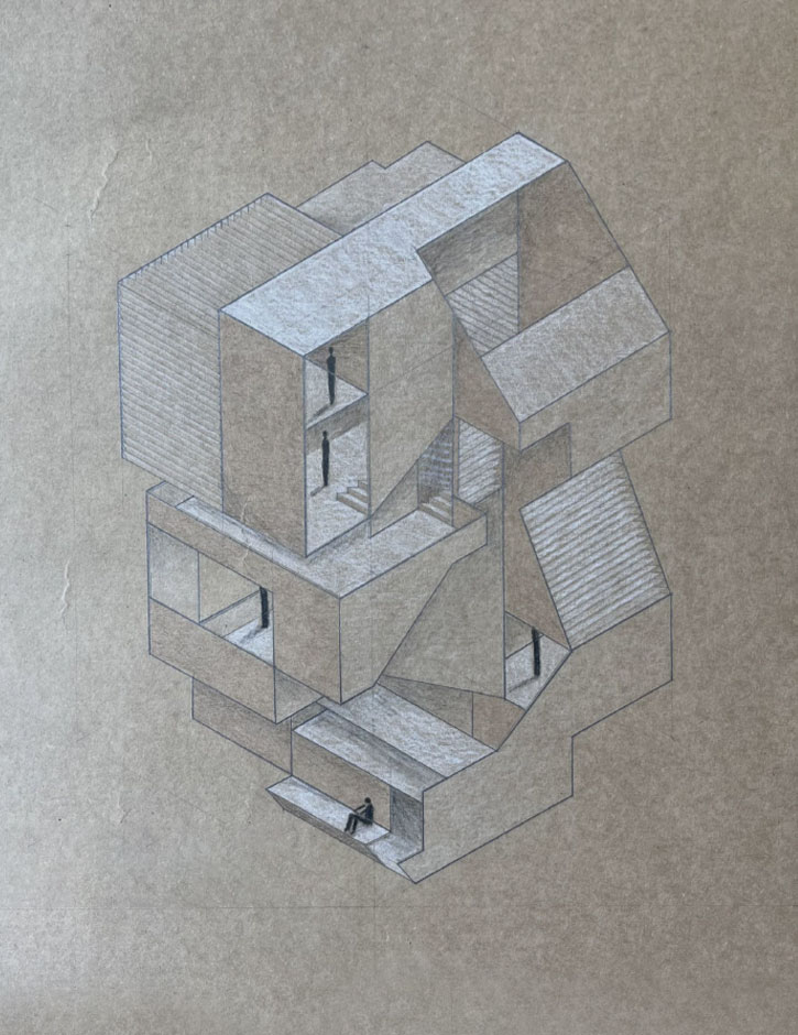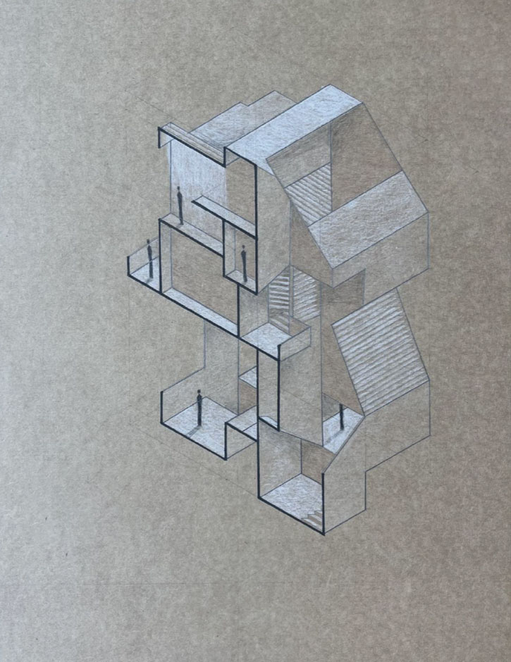 El proyecto se enfoca en diseñar una composición vertical que integre los espacios propuestos a través de una circulación vertical eficiente, que permita el acceso y la conexión fluida entre los diferentes niveles.